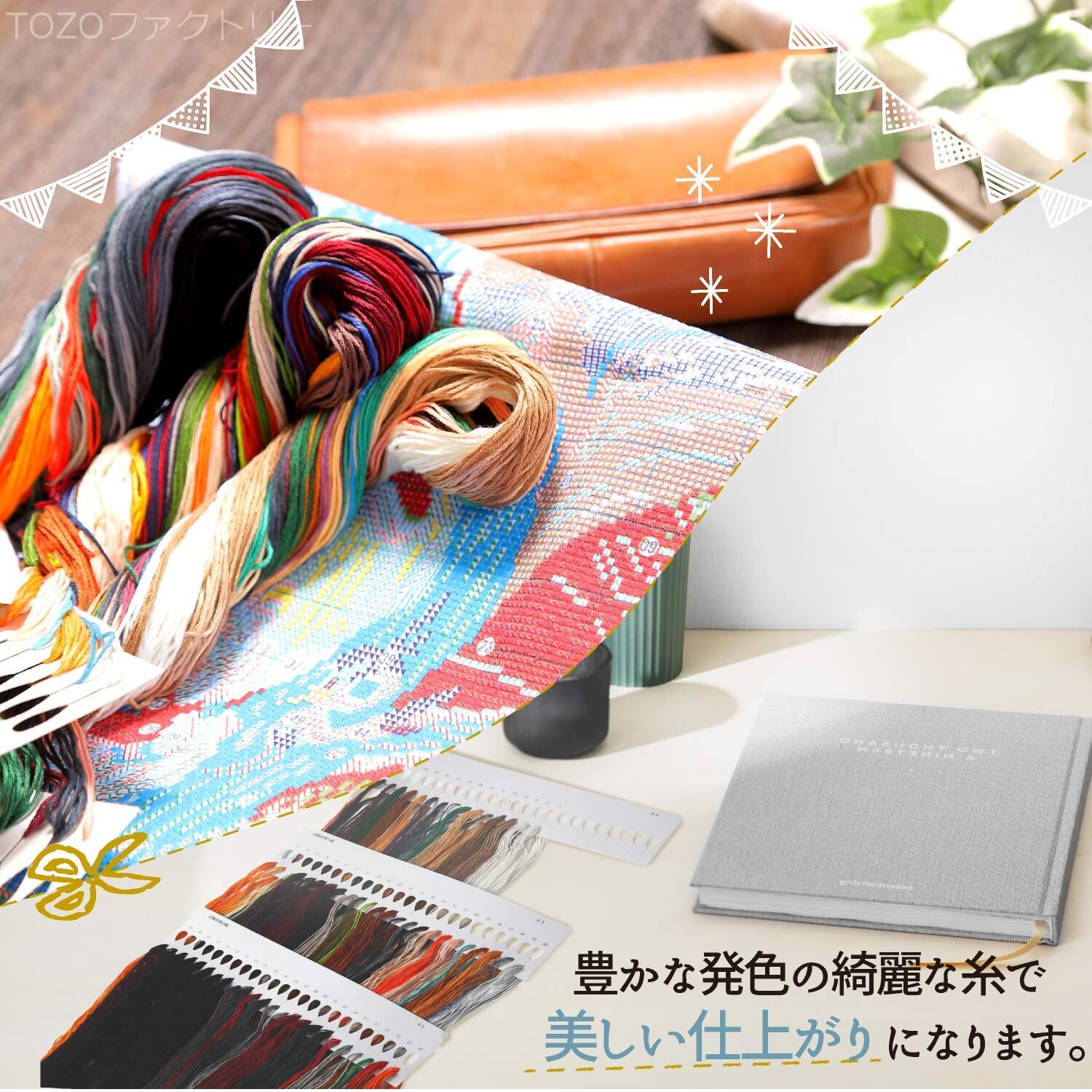 綿素材 布製 クロスステッチキット。必要なアイテムが全て揃っています。