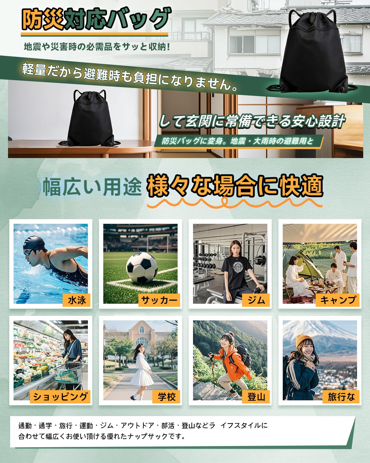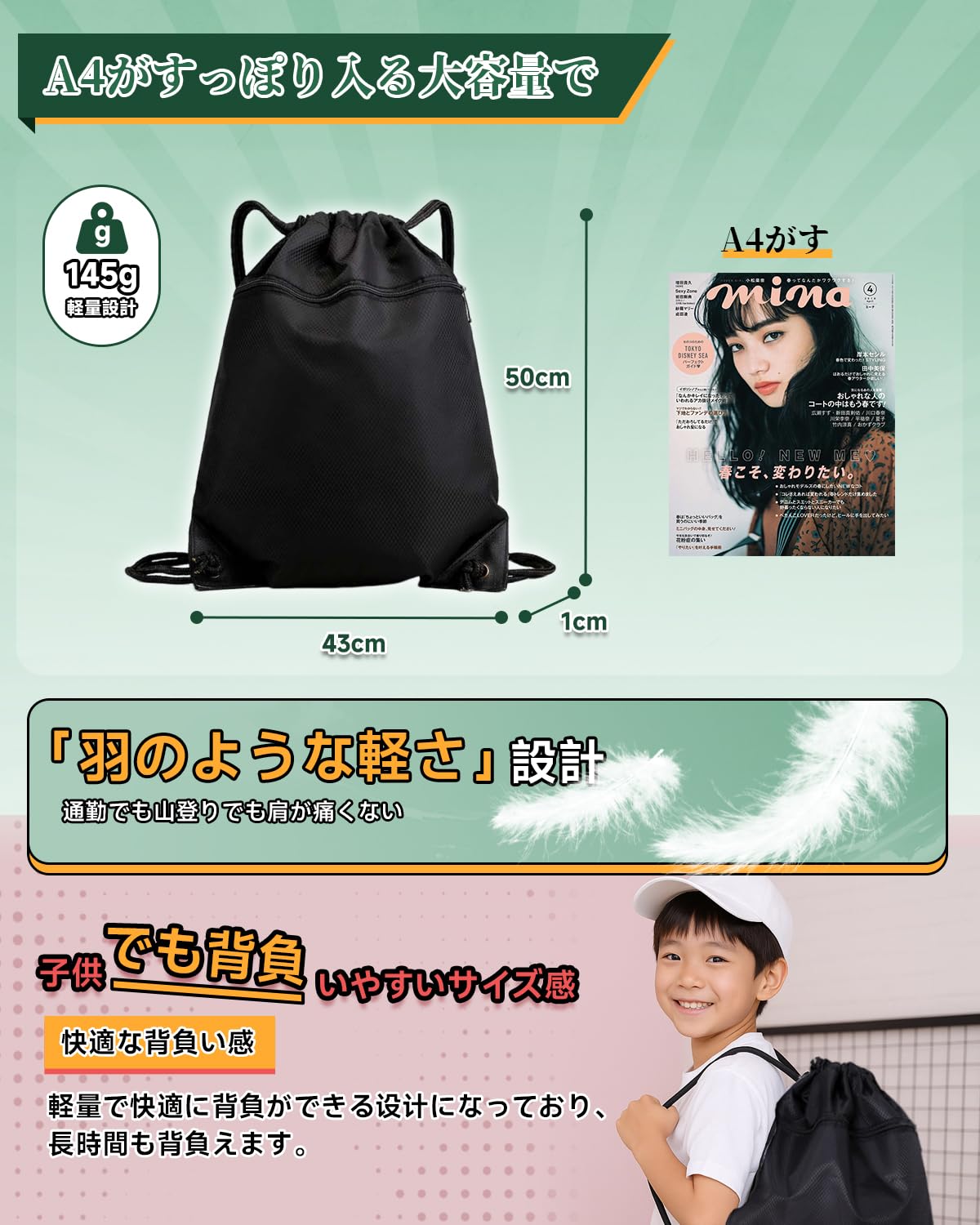 [LIKENNY] ジムサック リュック ナップサック プールバッグ 防水 軽量 折り畳み 多機能 シューズ収納 エコ 運動 旅行 アウトドア スポーツバッグ