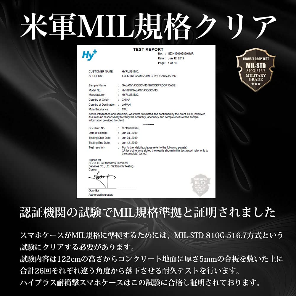 Hy+ Galaxy A30 SCV43 TPU 耐衝撃ケース 米軍MIL規格 衝撃吸収ポケット内蔵 ストラップホール付き(クリーニングクロス付き)