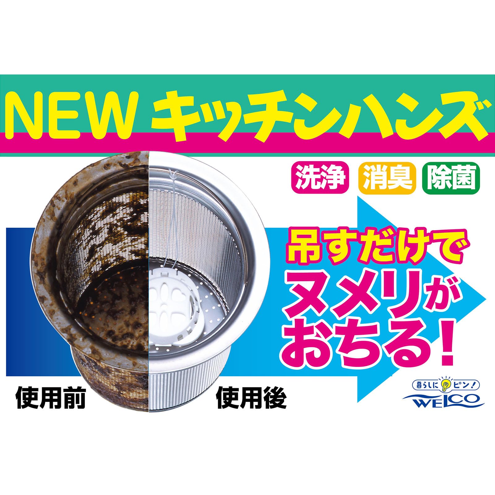 ゴミ受けストレーナー排水パイプに付着したバクテリアを除菌し、いやなヌルヌルやパイプの詰まりをスッキリ解消し、脱防臭の効果に優れています。
