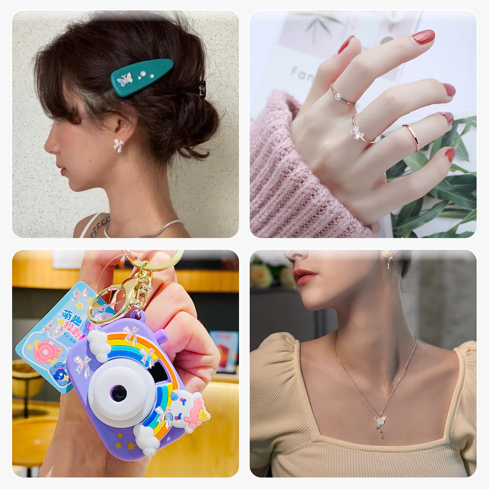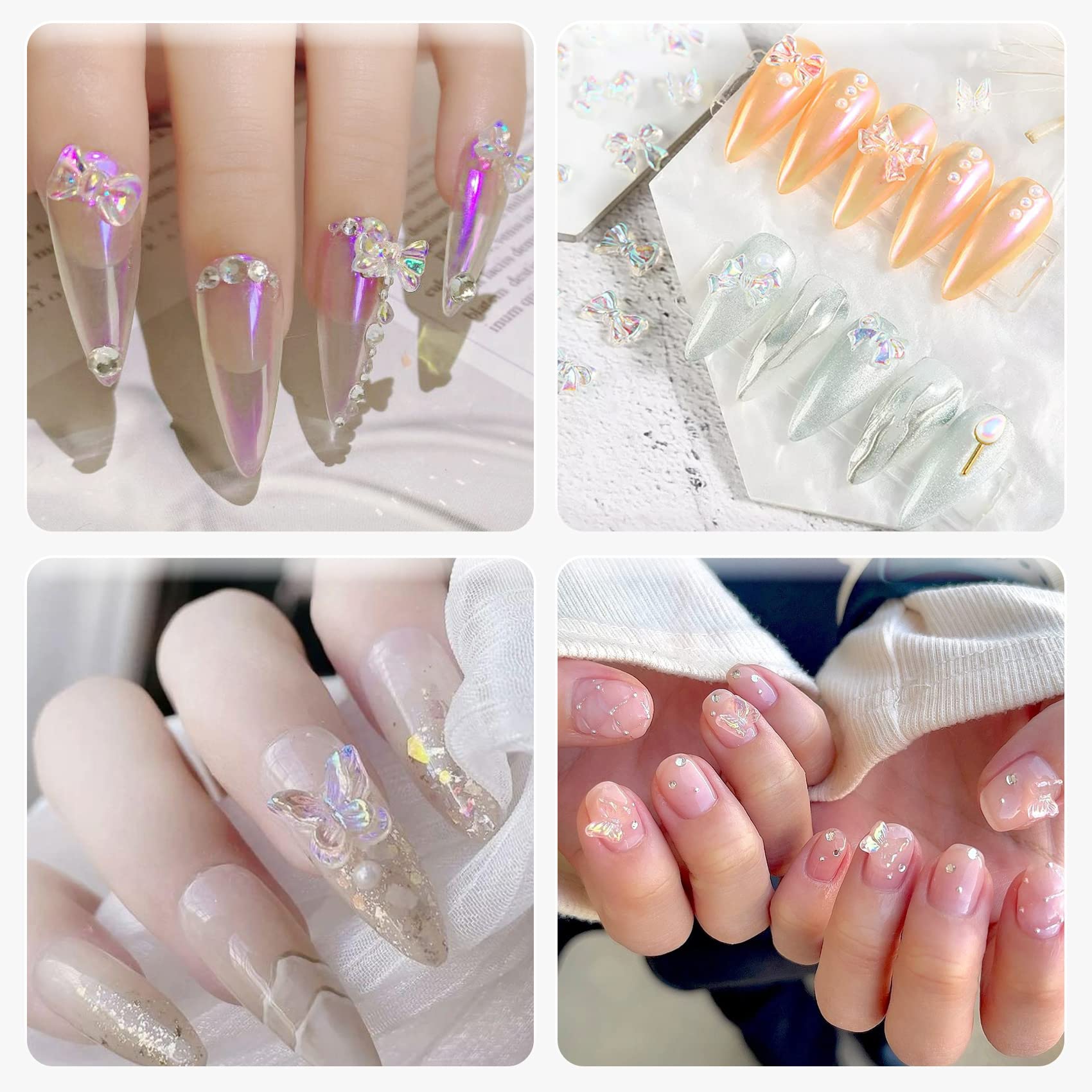 Annhua ネイルパーツセット 3D 立体 デコパーツ ネイルアート オーロラ 立体的な蝶々 リボン 蝶々パーツ ラインストーン ジェムストーン ジェルネイル ジュエリーパーツ ネイルデコレーション 手作り レジン封入パーツ キラキラ ネイルデザイン