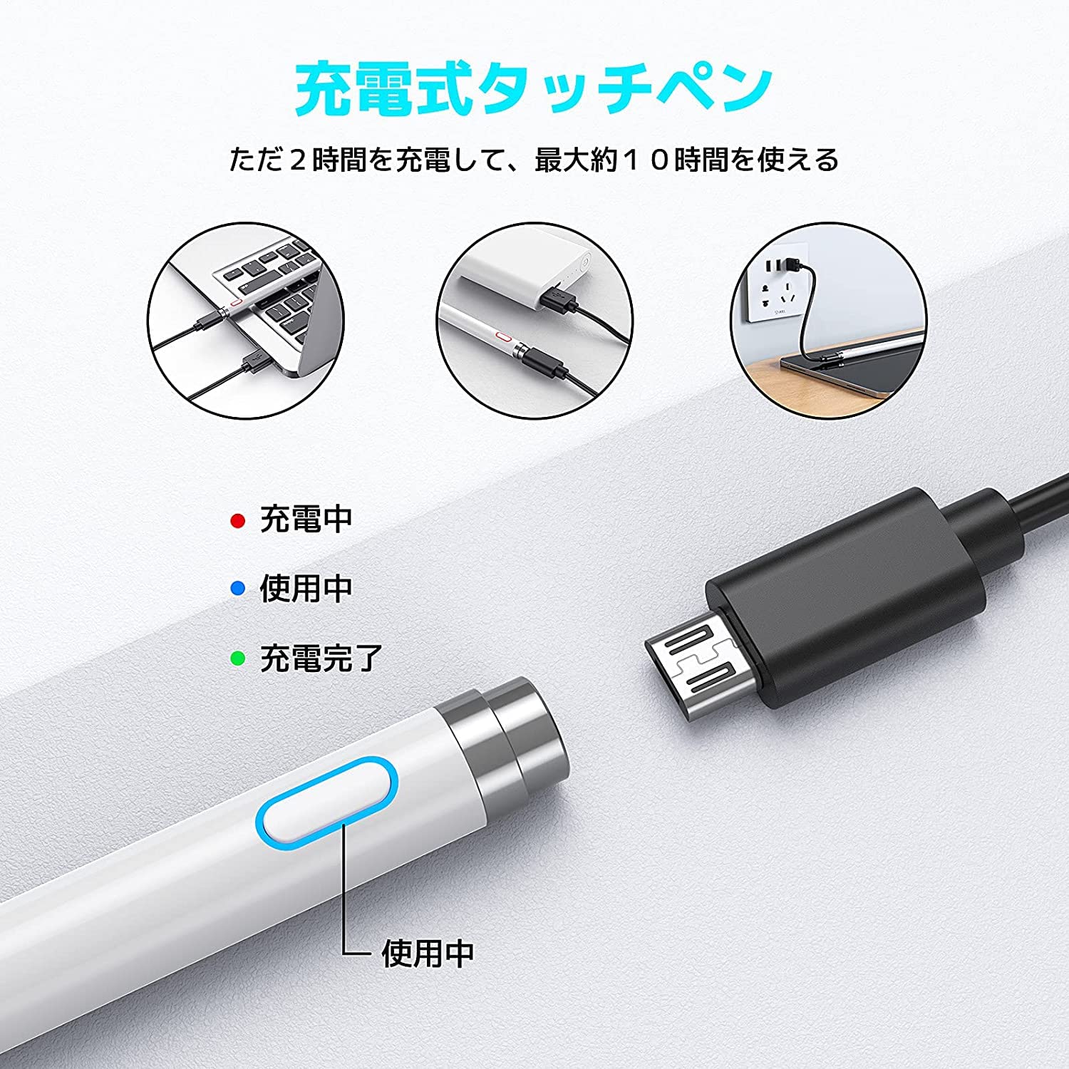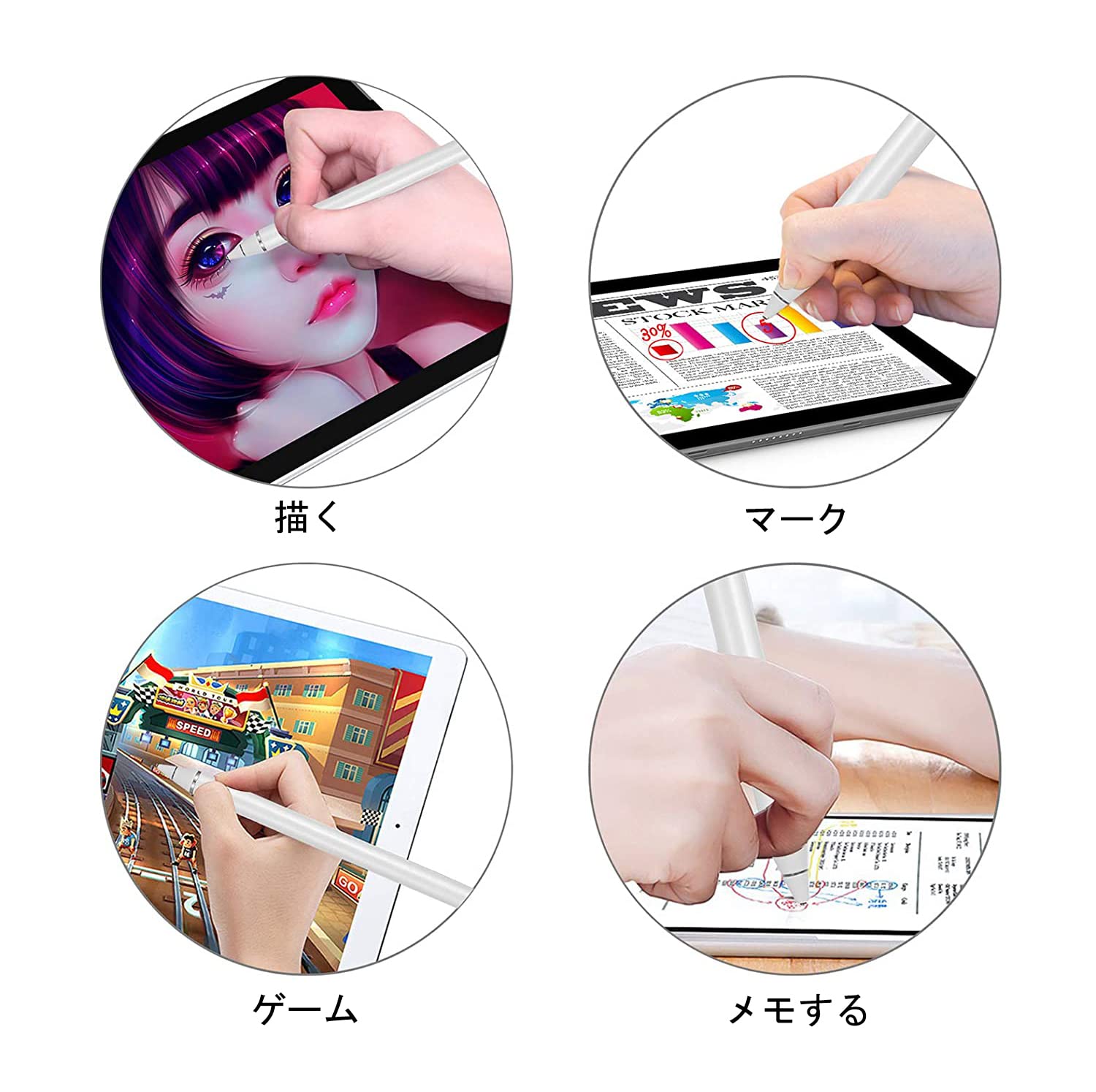 タッチペン スタイラスペン iPad用ペンシル 第9/8/7/6/5/4/3/2世代 iPad Air 4/3/2/1 iPad Mini 6/5/4/3/2/1 iPad Pro 12.9/11/10.5/9.7 対応 ペン (ホワイト)