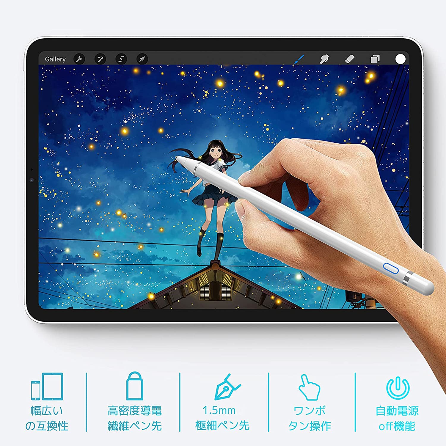 ボールペンのような書き味なので扱いやすいとともに、画面に傷が付きにくいです。スマートフォンやタブレットでイラストを描く方にも適しています。滑りがよく、まるで紙の上で絵の具を走らせているような感覚が楽しめるのが特徴。