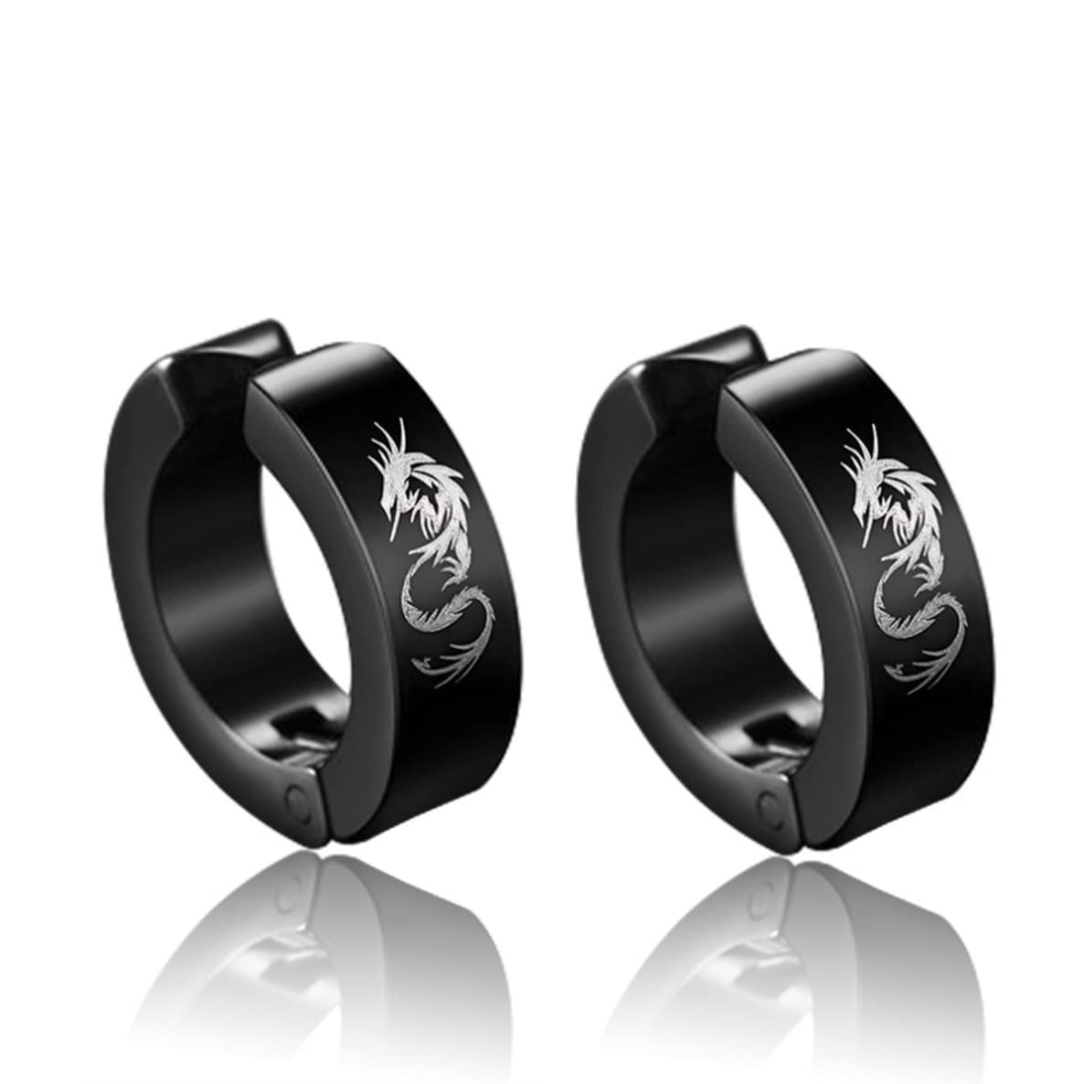 ALOHAMONI (アロハモニ) フェイクピアス イヤーカフ イヤリング ブラック シルバー 黒 銀 両耳 2個 セット フープ リング ノンホール フェイク ピアス レディース メンズ ユニセックス 男女兼用 バネ式 スプリング 挟むだけ 簡単 装着 (A4. ドラゴン)