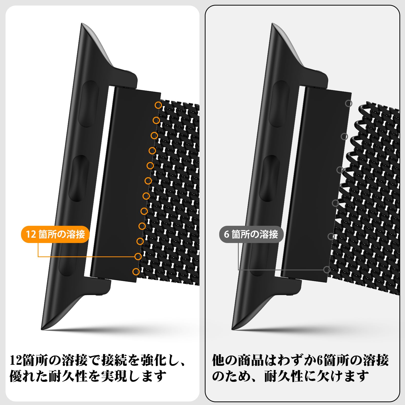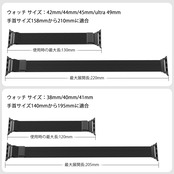 【全機種対応】コンパチブル Series Ultra3/Ultra2/Ultra/SE3/SE2/SE/11/10/9/8/6/5/4/3/2/1 シリーズに対応可能。49mm/46mm/45mm/44mm/42mm/41mm/40mm/38mm のサイズに対応できます。42mm(Series 11 10)/41mm/40mm/38mmは手首周り140mm〜195mmに適しています。49mm/46mm/45mm/44mm/42mm(Series 3 2 1)は手首周り158mm〜210mmに適しています。※購入前にサイズをご確認ください。
