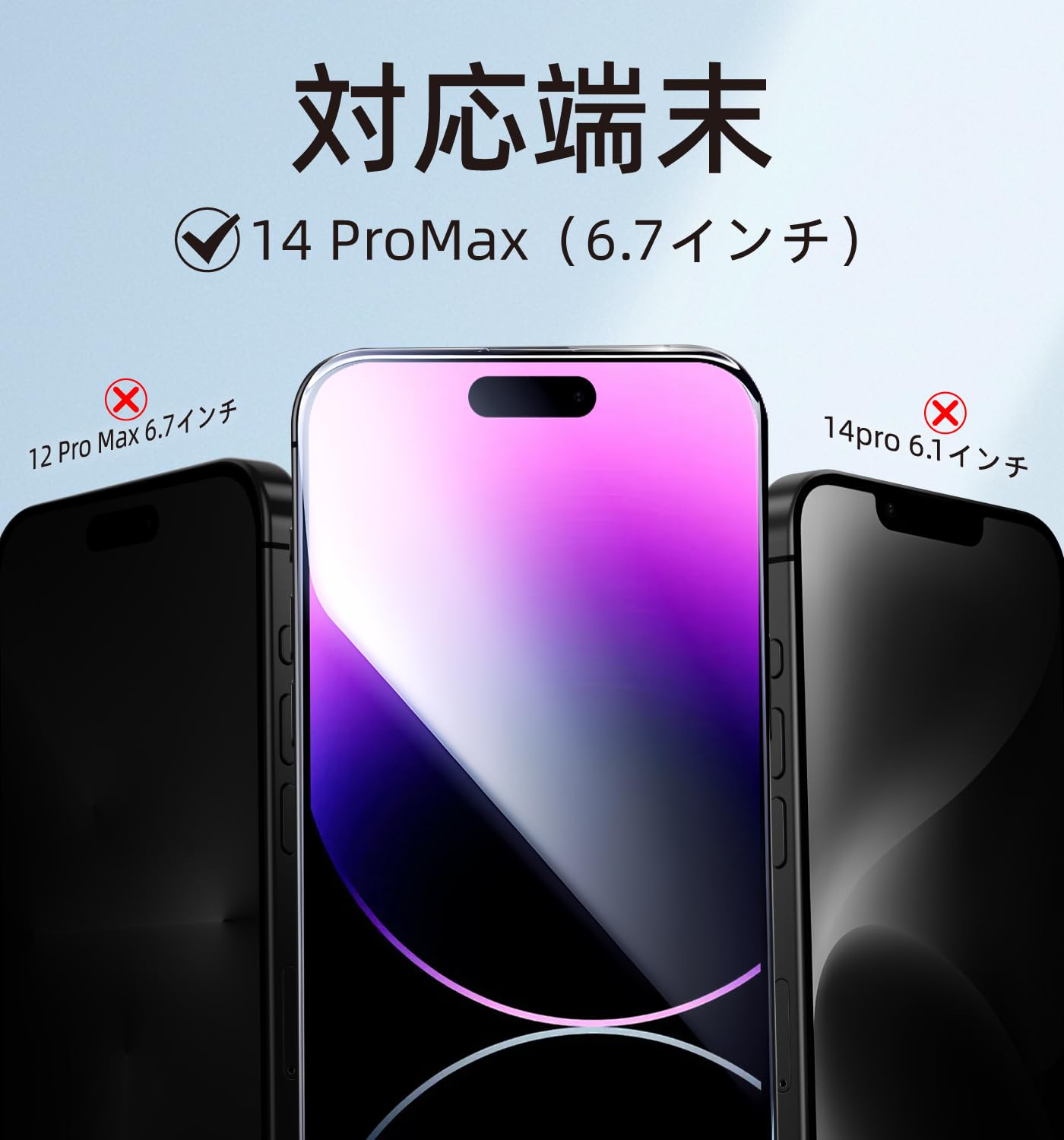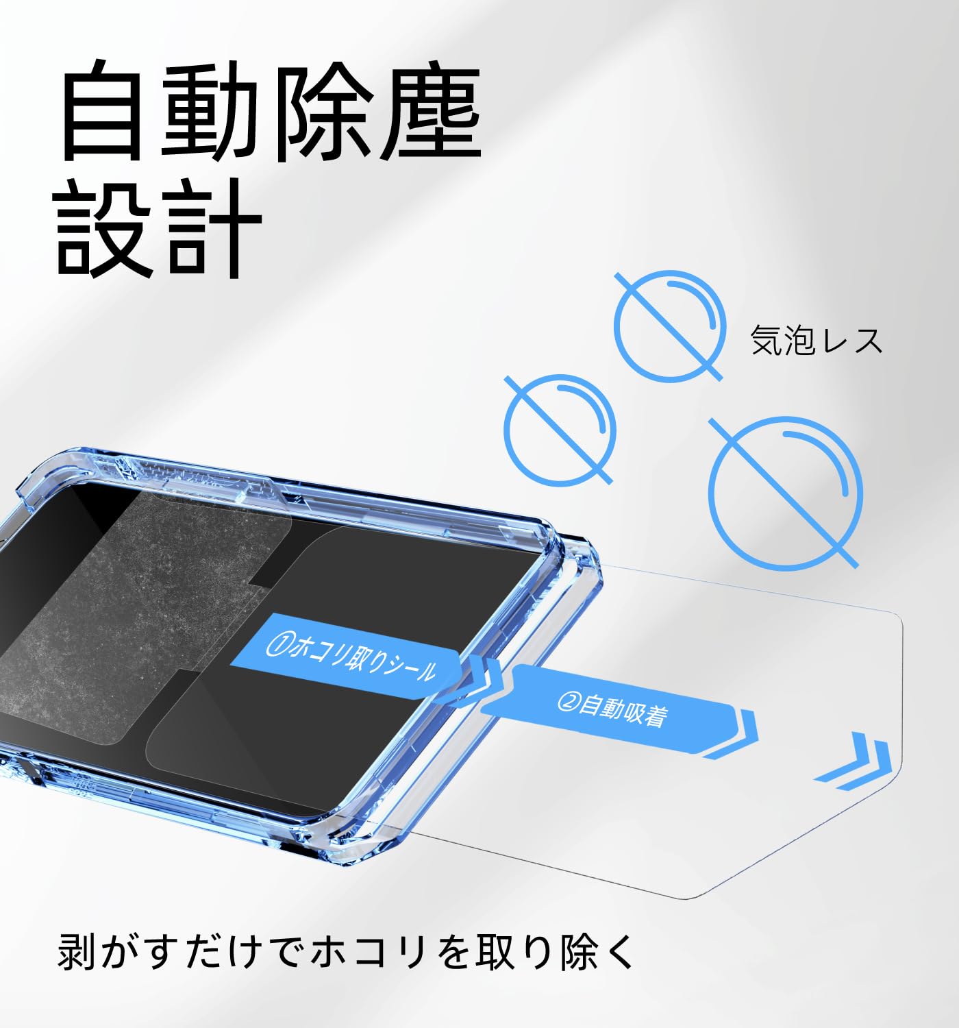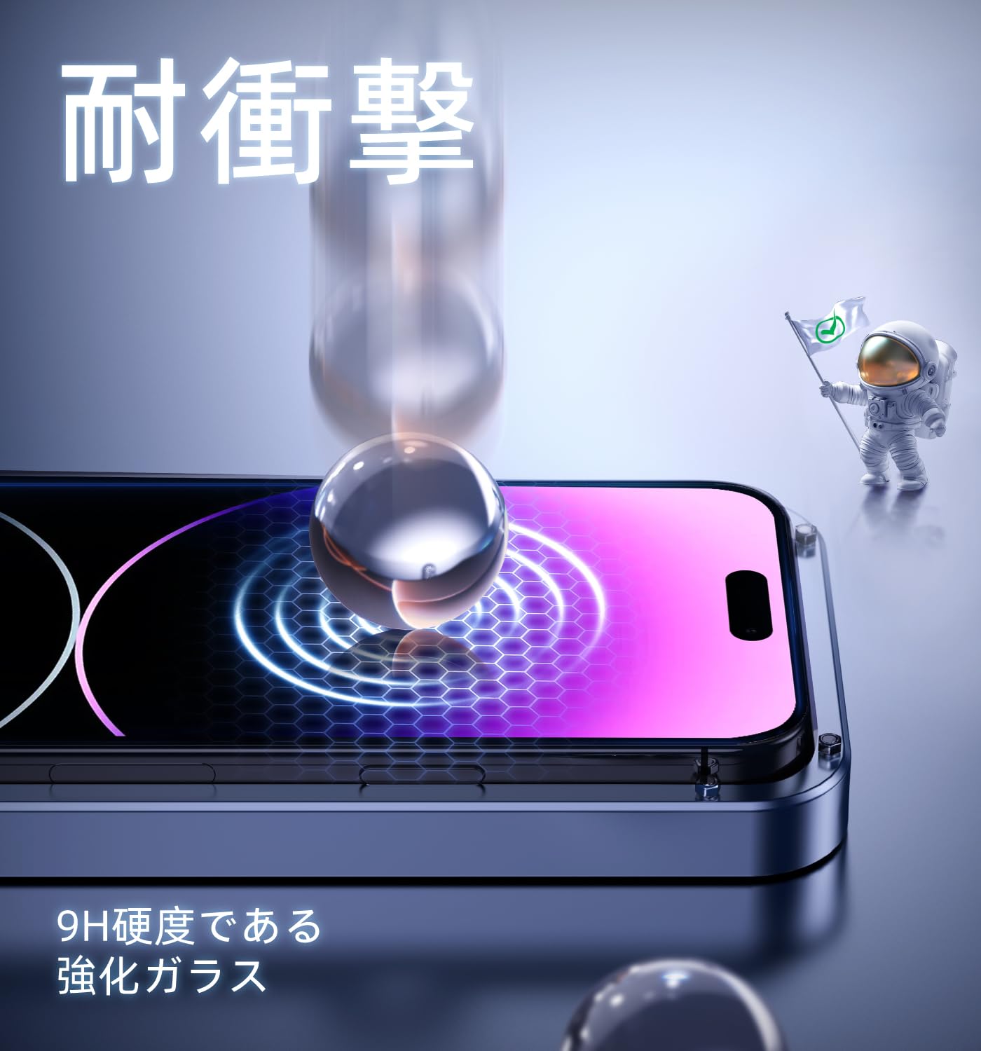 【もう失敗はしない】本製品はiPhone14 Pro Maxに対応するガラスフィルム2枚セットです。百万以上の欧米ユーザーのフィドバックを集めて日々改善したガイド枠は、3歩だけで保護フィルムを貼り付けます。そのうえ、自動ホコリ取りデザインだけでなく、ガイド枠のスロープデザインで、空気を順序に取り除くことができて、初心者でも気泡レスのまま綺麗に貼れます。