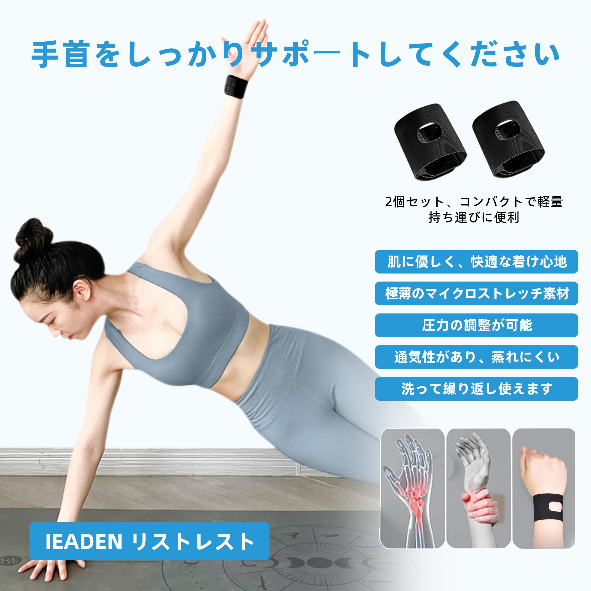 【特価】[2枚組] IEADEN 手首 サポーター 固定 スポーツ 超薄型 TFCC リストバンド 筋トレ 腱鞘炎 サポーター 手首 薄手 通気性 怪我の予防、家事、育児、パソコン操作、ゴルフ、テニス 男女兼用 左右兼用 ブラック S | GIGATERA