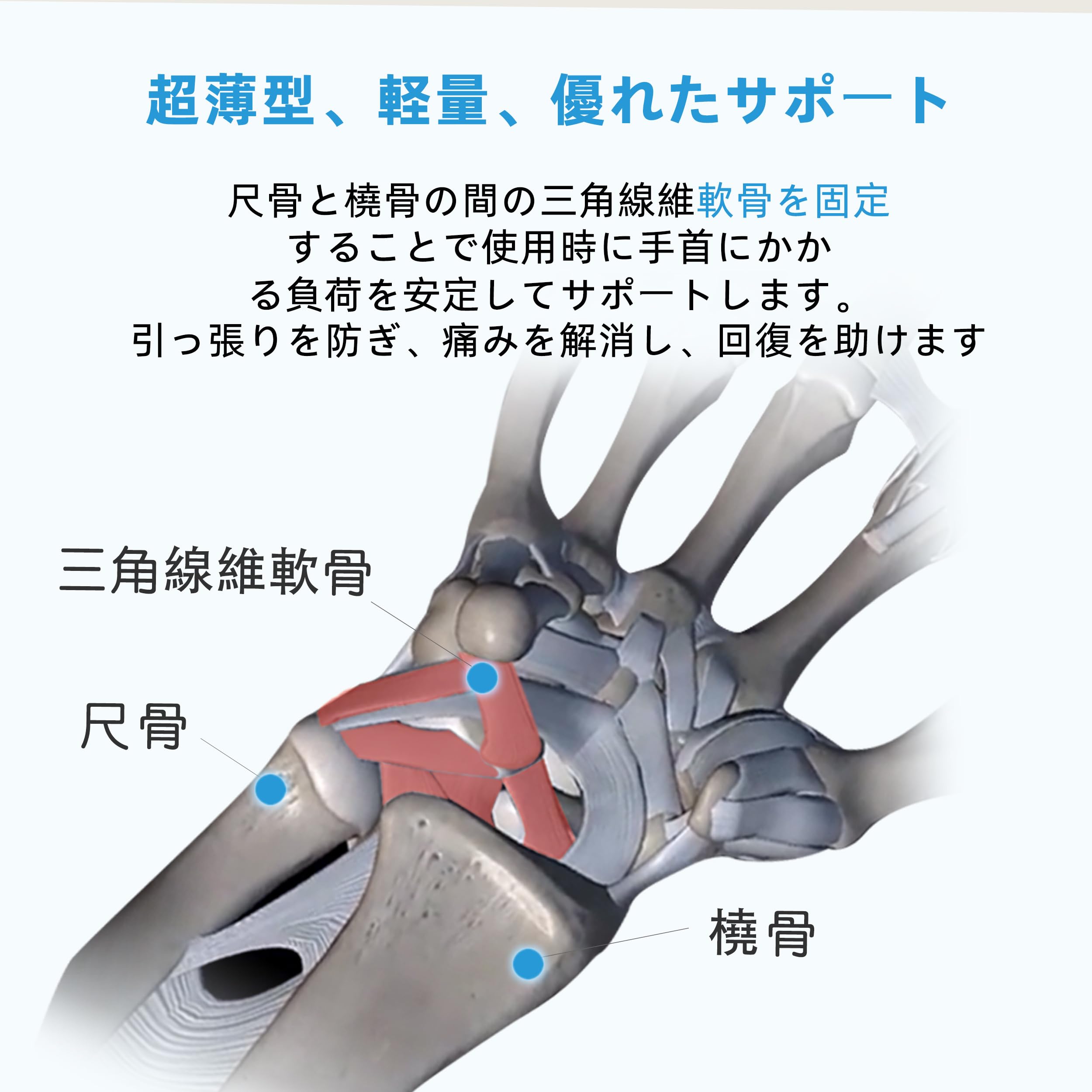 【手首の圧迫サポート】:手首 サポーターは、手根骨とTFCCを圧迫することで手首を固定し、手首関節の動きを制限し、腱鞘炎や手首の怪我を緩和し、二次的な怪我を予防します.