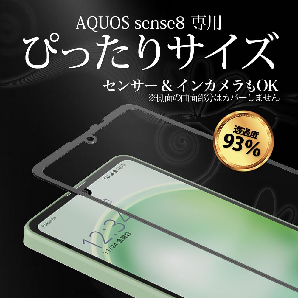 Hy+ AQUOS sense8 フィルム SH-54D SHG11 SH-M26 ガラスフィルム W硬化製法 一般ガラスの3倍強度 全面保護 全面吸着