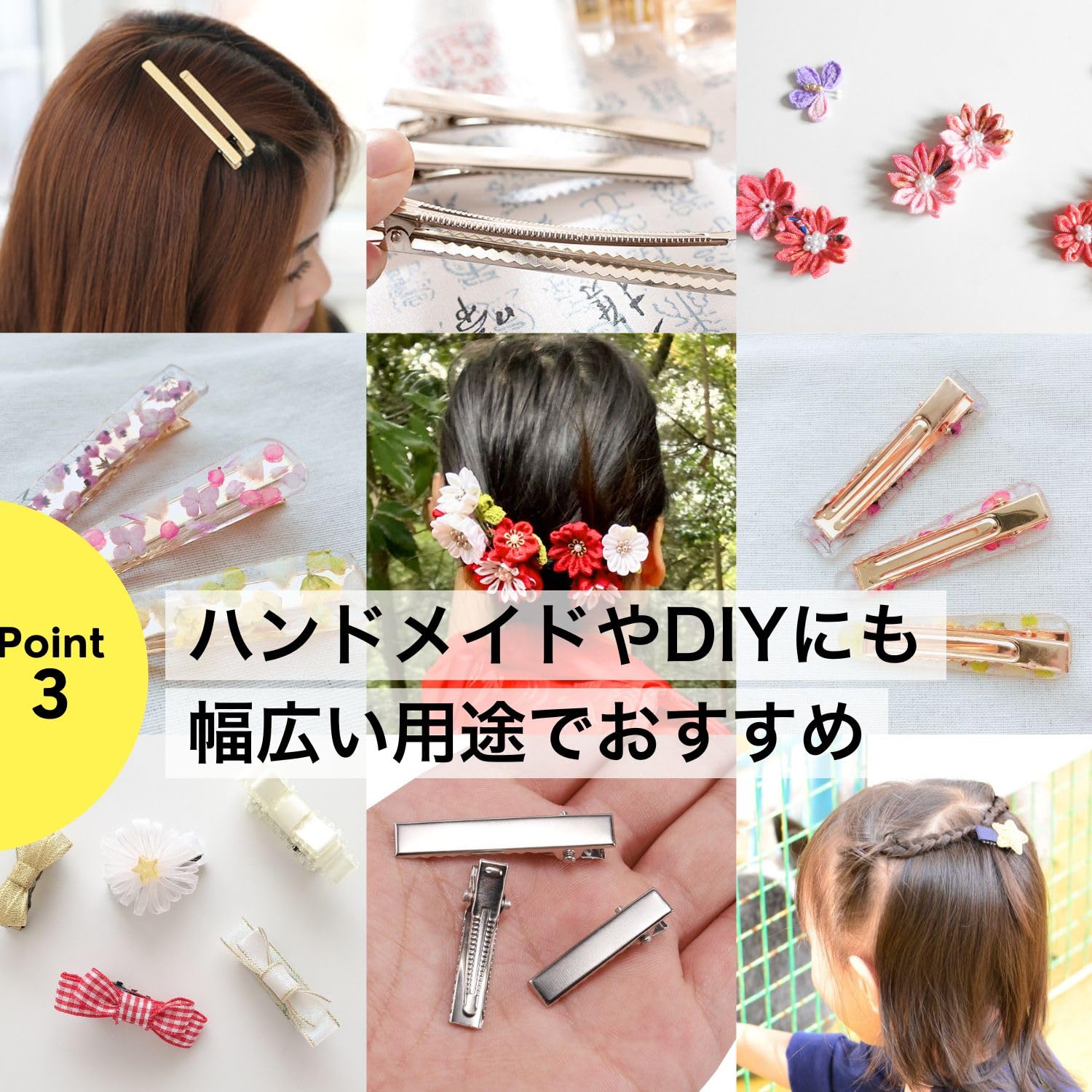 【髪の毛以外にも多用途に使える】前髪クリップとしてはもちろん、ハンドメイドのパーツとしてやプラモデルのパーツ塗装、乾燥時のサポートとしても、多用途に使用していただけます。ストレートタイプなのでレジン、つまみ細工、リボン、パール、ビーズ、フェルトなどがつけやすく、手作りをお楽しみいただけます。