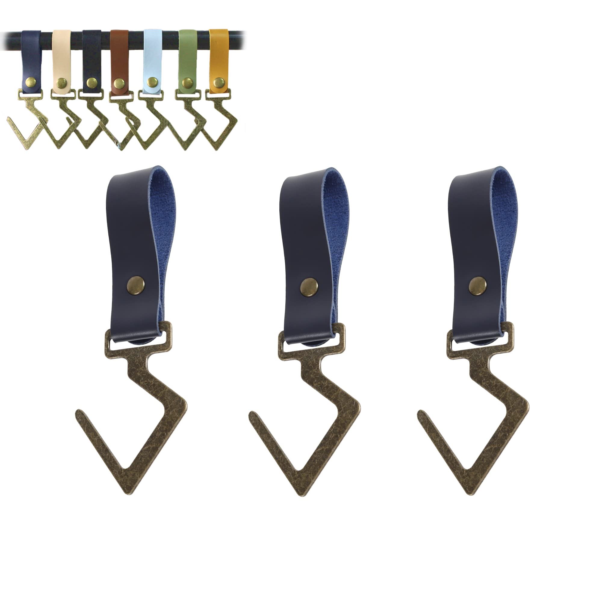 【職人ハンドメイド】PUレザー製 ランタンフック 忍者フック キャンプ アウトドア ハンガー 吊り下げ ライト 調理器具 キッチン 野外 収納 S字フック (ネイビー3個入り)