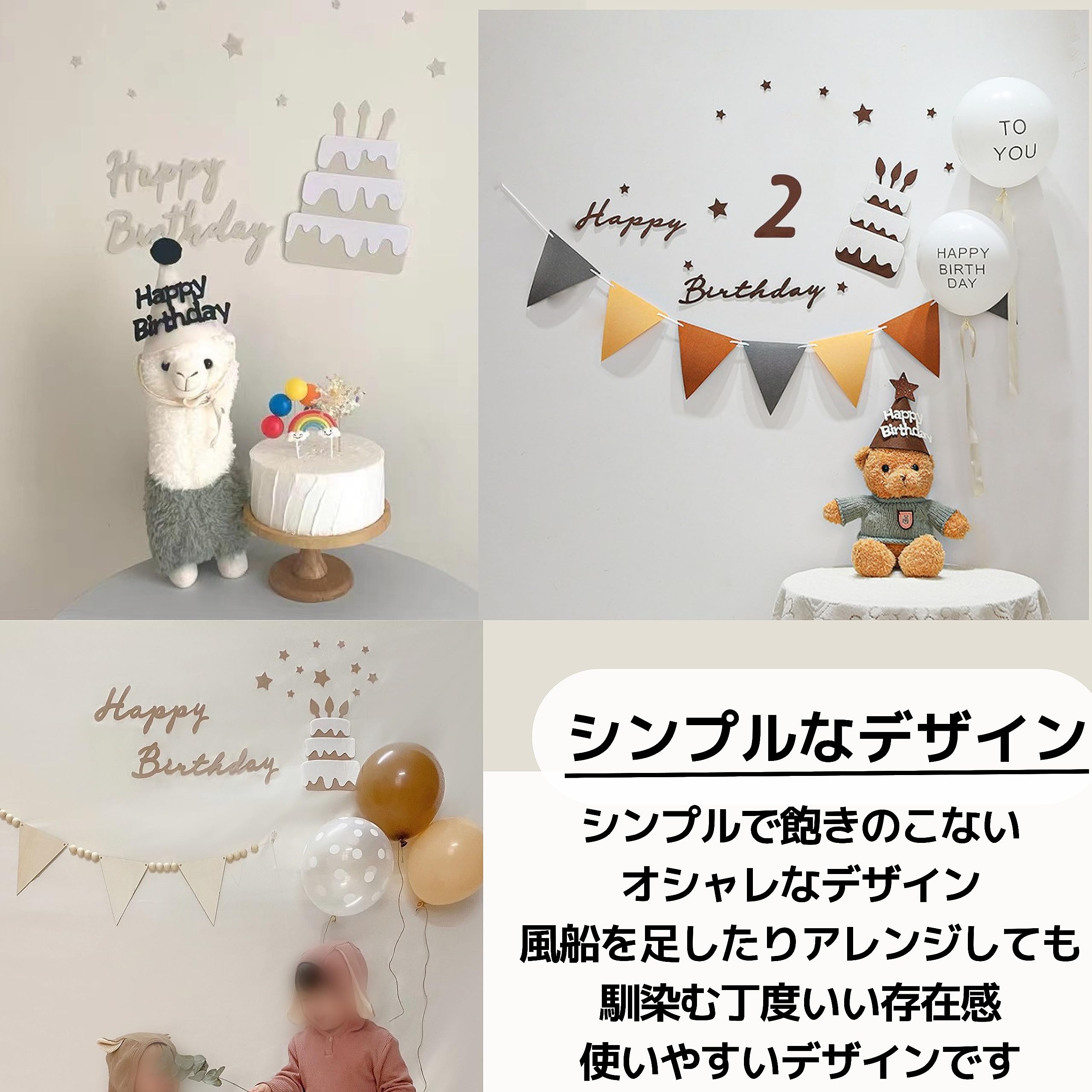 【特価在庫】East Leaf 誕生日 飾り バースデー タペストリー ガーランド シンプル ナチュラル バナー フェルト (Happy Birhtday + Cake + 数字バナー) (コーヒー) | GIGATERA
