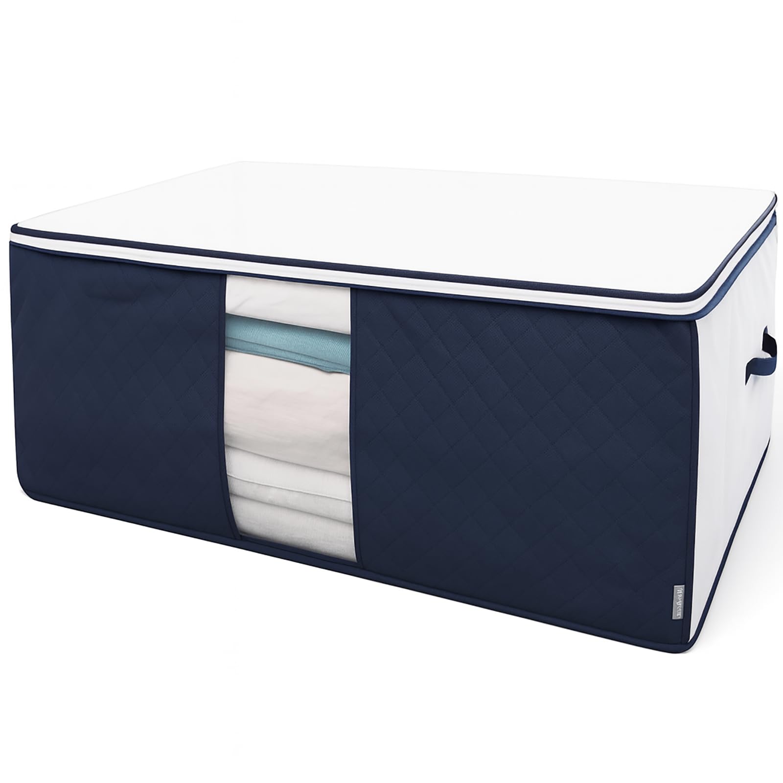 【商品仕様】サイズ/(約)幅100x奥行70x高さ35cm 本体重量:280g カラー/ホワイトx藍色 内容/1枚 収納目安/掛け布団(シングル)・敷布団(シングル - シングルロング) 各1枚 材質/ポリプロピレン不織布・ポリエチレン・活性炭シート 生産国/中国 ※洗えません