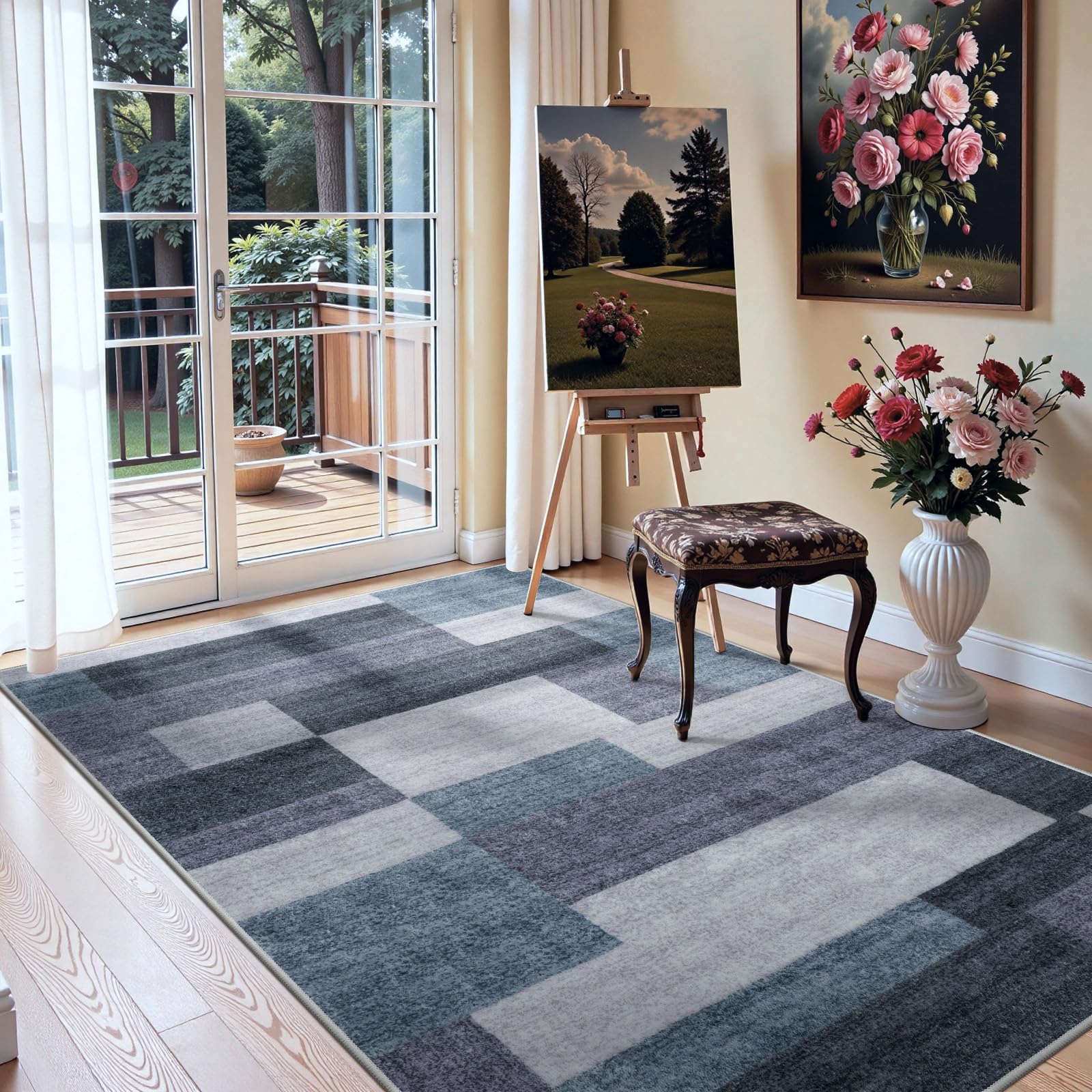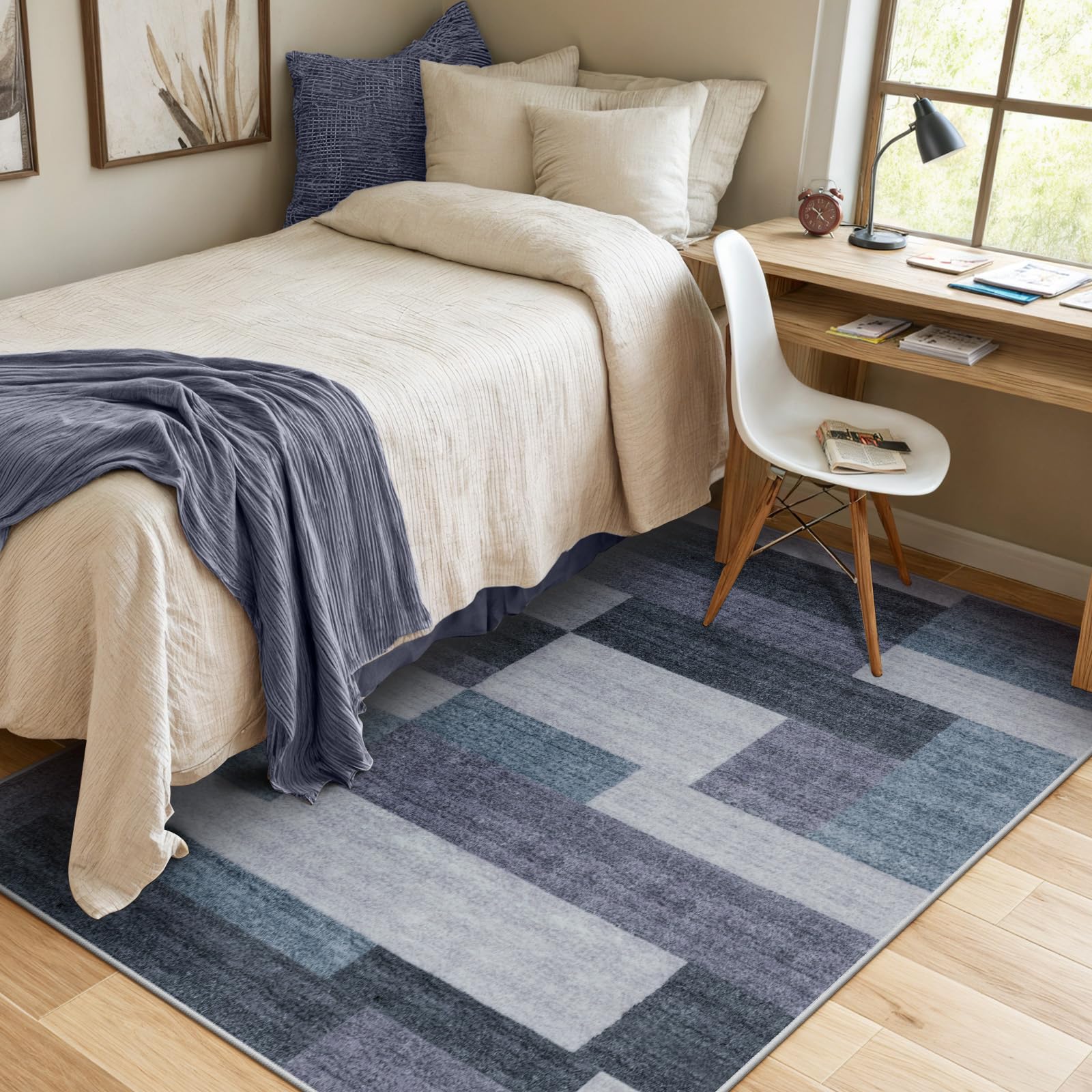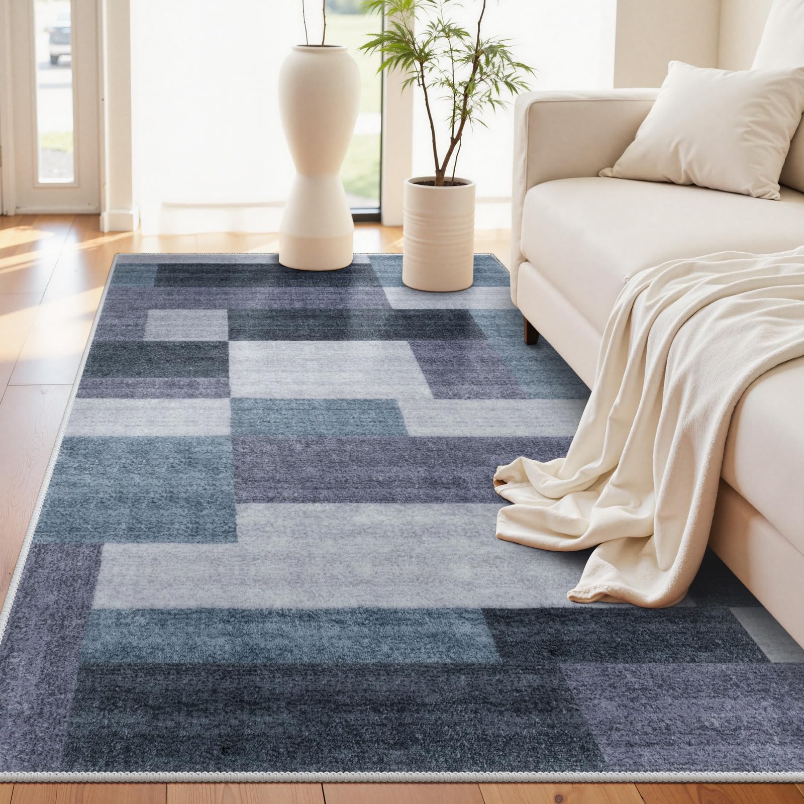 HAOCOO カーペット 洗える 140х200cm ラグ 約1.5畳 北欧風 モダン ホットカーペット対応 ふわふわ 滑り止め 防音 抗菌防臭 室内用 長方形 ラグマット オールシーズン適用 モザイク カラーマッチング ブルー