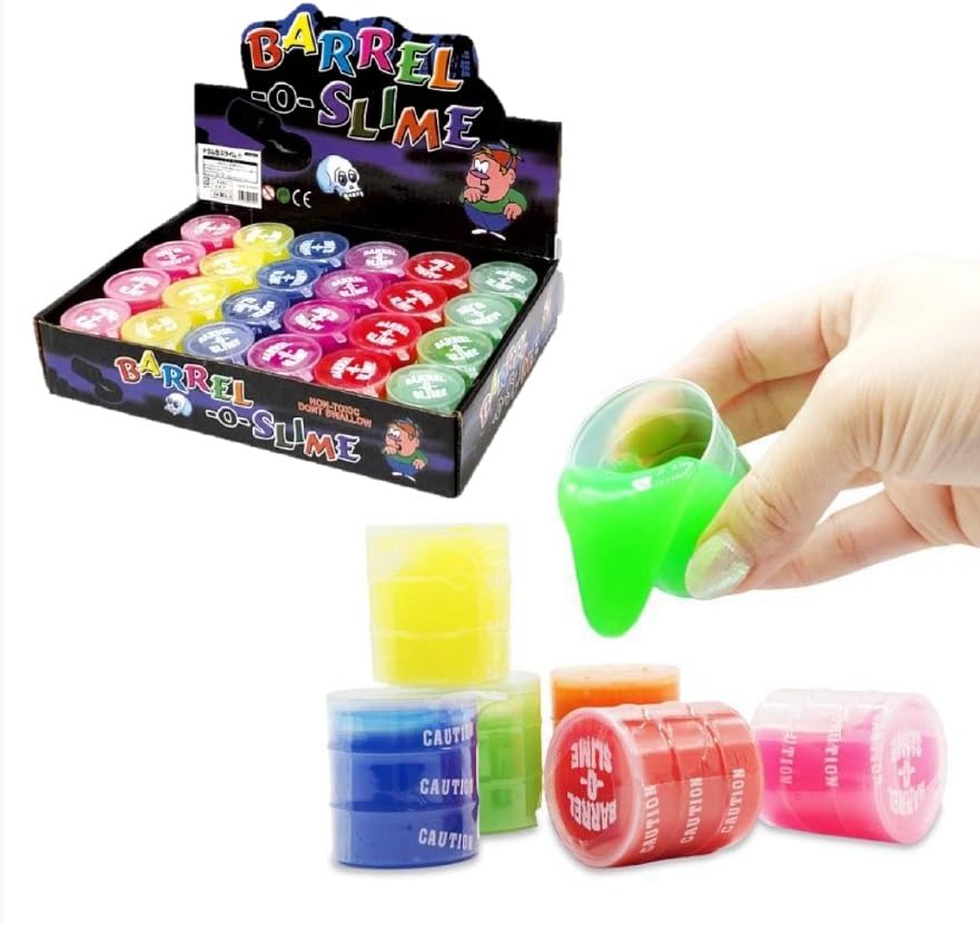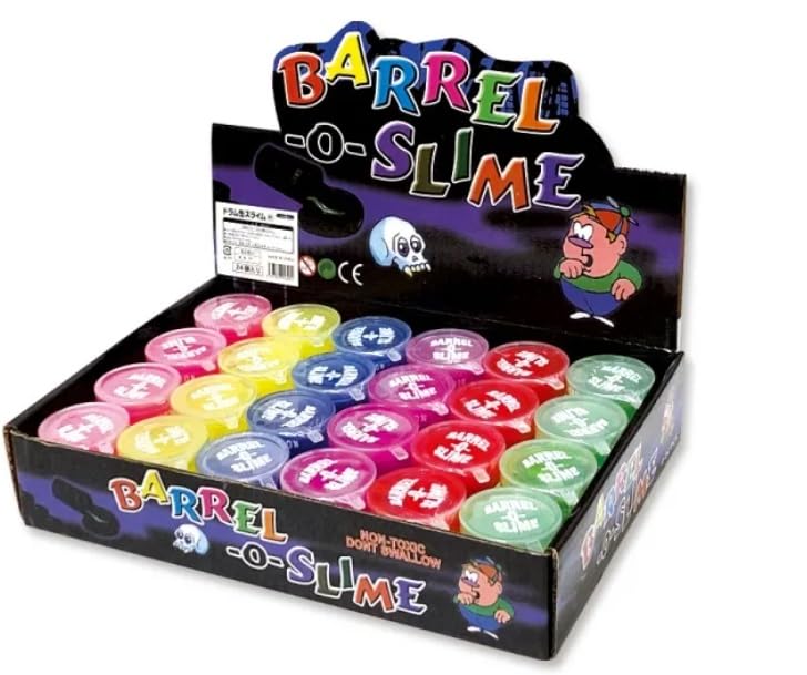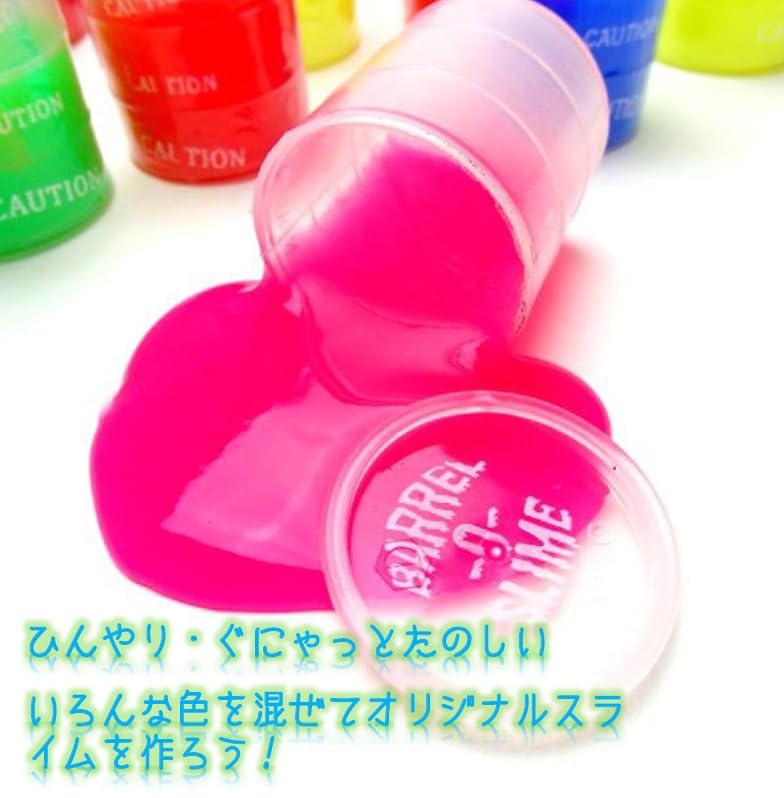 透明なドラム缶の容器に入った スライム です。ドロ〜とした感触のカラフル スライム。ひんやりぐにゃ〜としております。 シュリンクパック個別包装になっており、カプセル景品におすすめです。 6色をミックスして、計24個/箱のセットです。