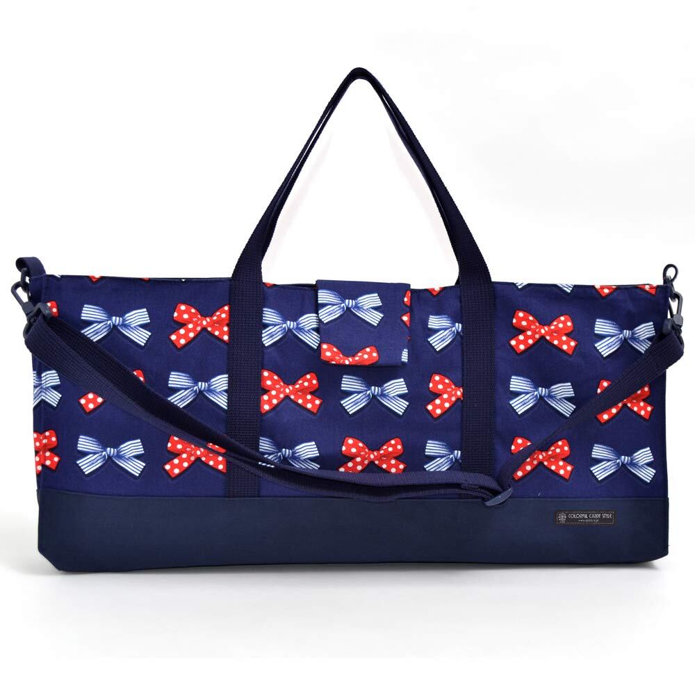 COLORFUL CANDY STYLE ピアニカケース 女の子 鍵盤ハーモニカケース ショルダー 肩紐付き 鍵盤ハーモニカバッグ ピアニカバッグ ポルカドットとストライプのフレンチリボン(ネイビー) N4326900
