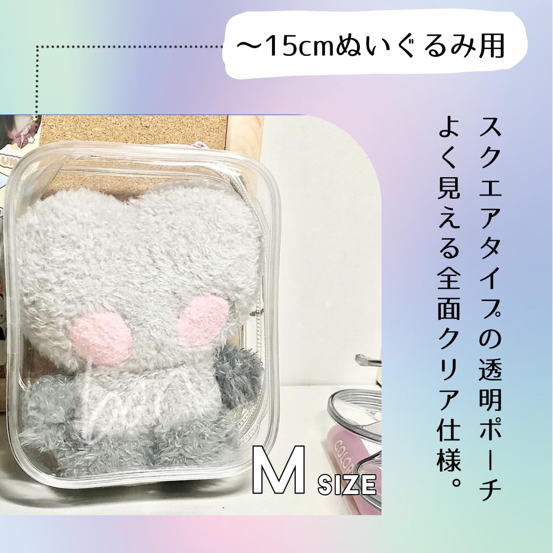 【推し活・ぬい活に♪】 お気に入りのぬいぐるみをポーチに入れて一緒にお出かけ♪スクエアタイプの透明ポーチです。ぬいぐるみがよく見えるクリア仕様です。