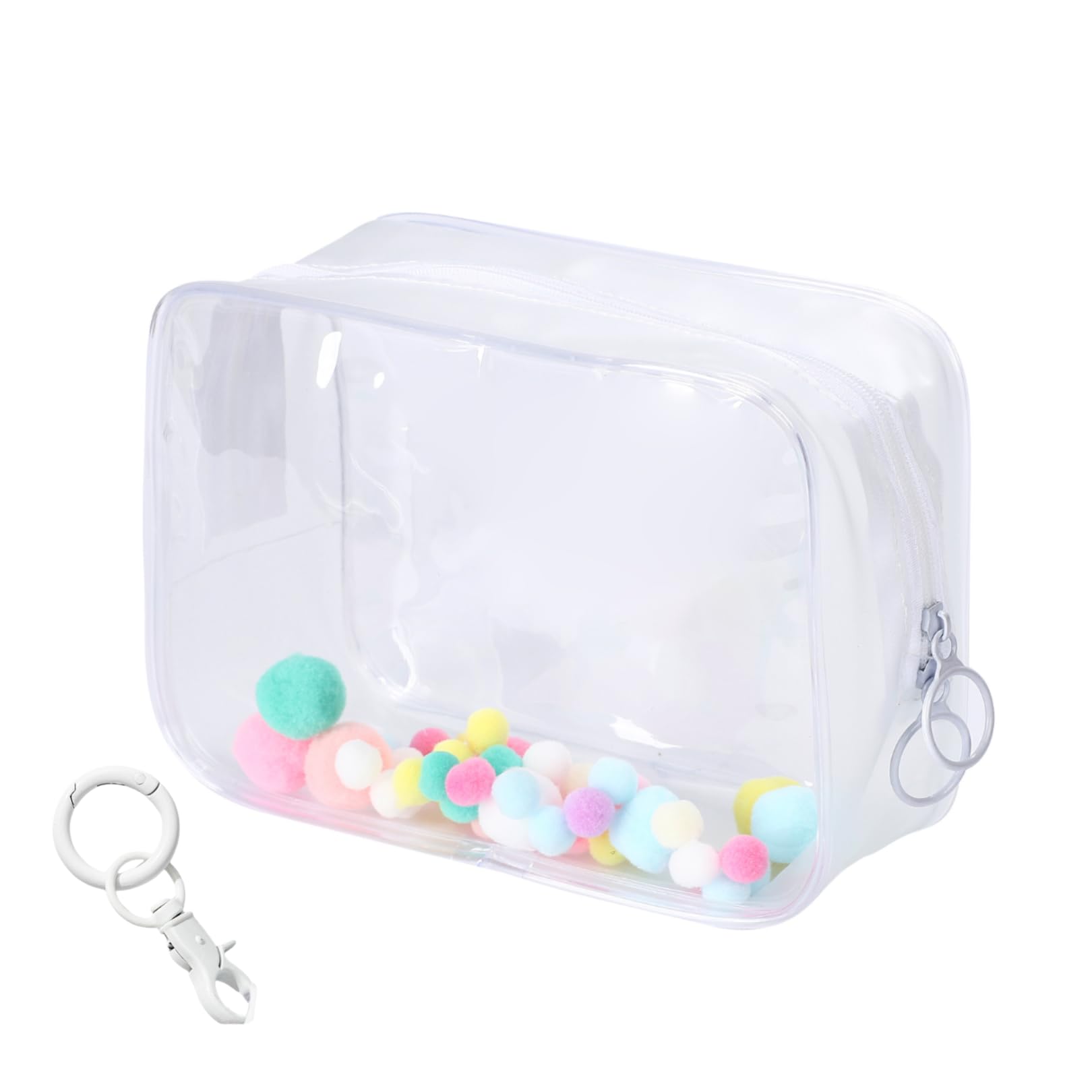 Copeflap ぬいぐるみ 持ち運び バッグ ぬいポーチ 痛バ 透明 クリア 推し活 (ホワイト 15cmぬいぐるみ用 ポンポン付き)