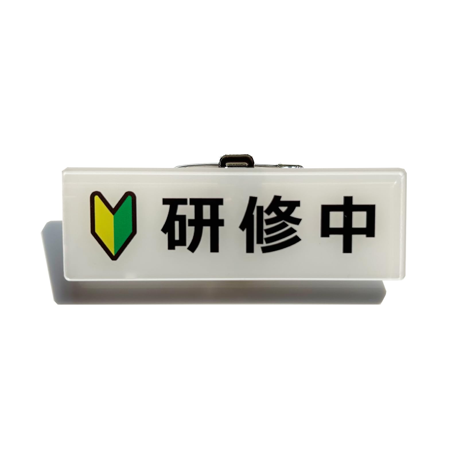 研修中 バッジ クリップ ピン バッジ アクリル製 初心者マーク 若葉マーク 75×25×2mm