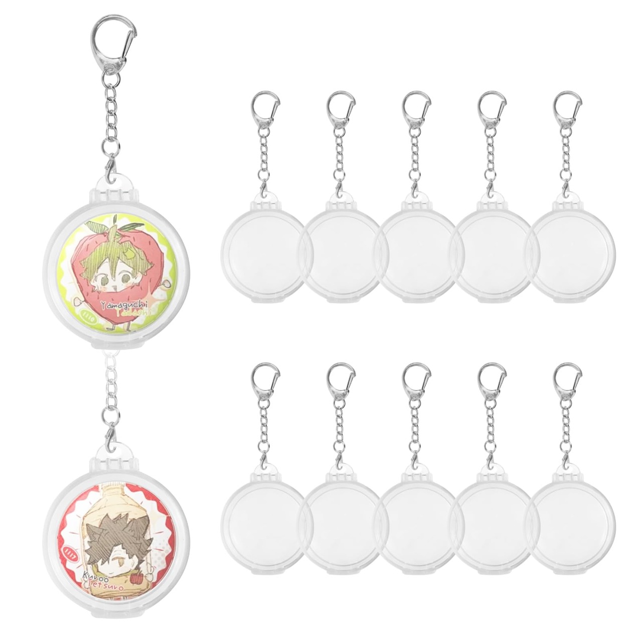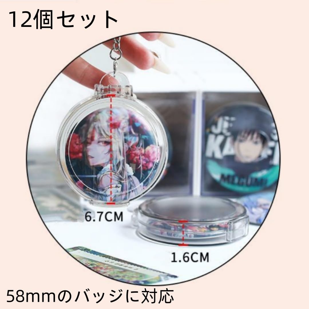 siawadeky 缶バッジカバー 12個セット 丸型 キーホルダー式 透明ケース 58mmのバッジに最適 携帯便利 透明性 防塵 防水 傷防止 ディスプレイ 保護カバー 外出 旅行 痛バッグ用 アクセサリー
