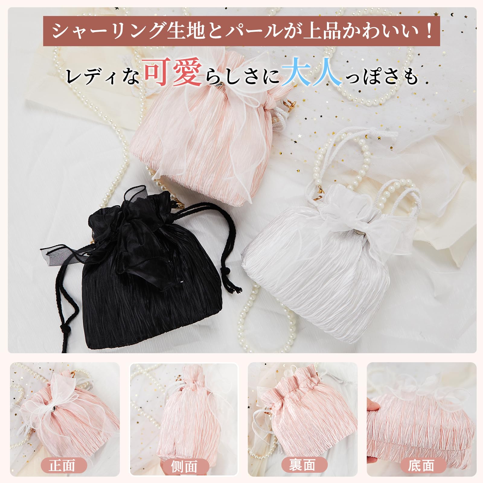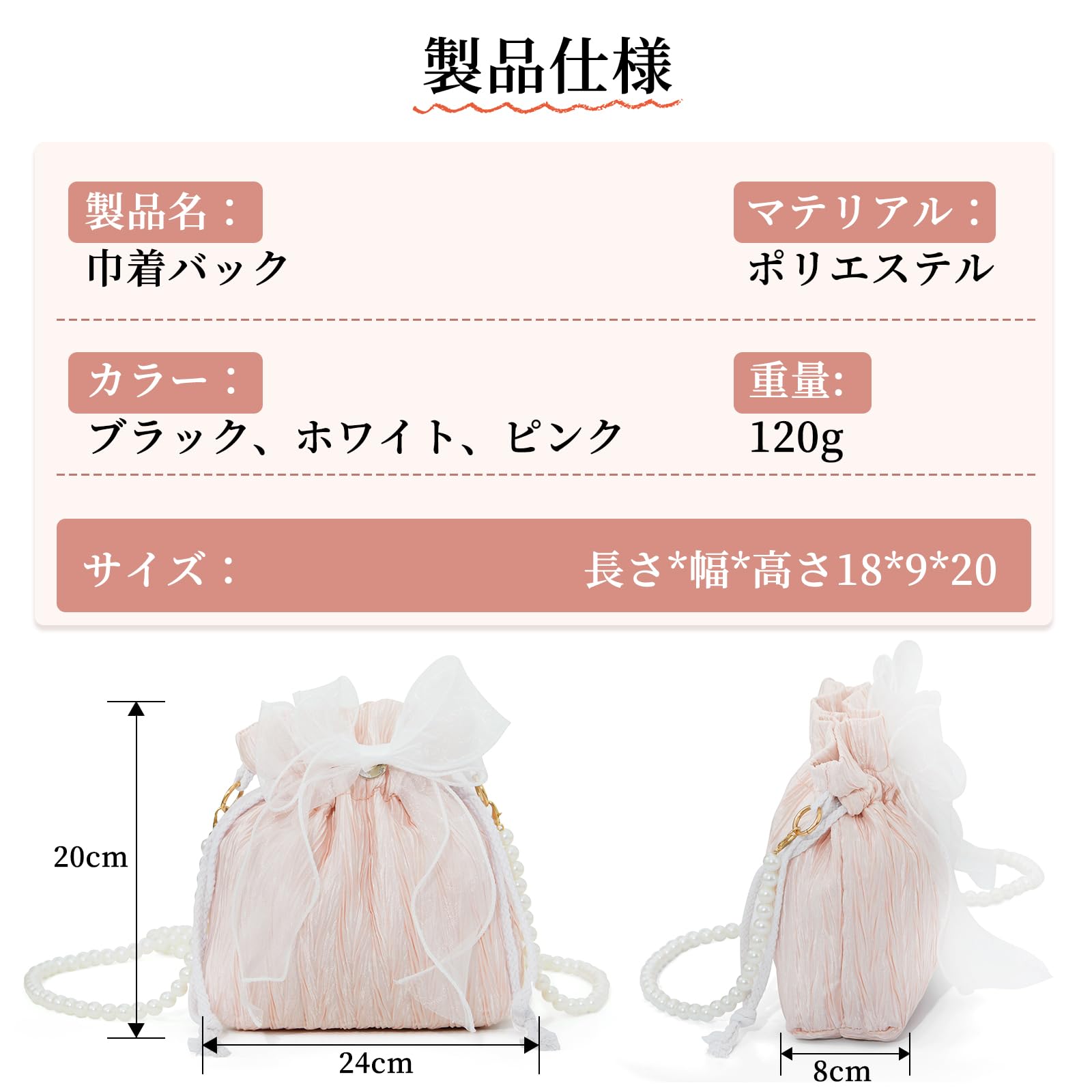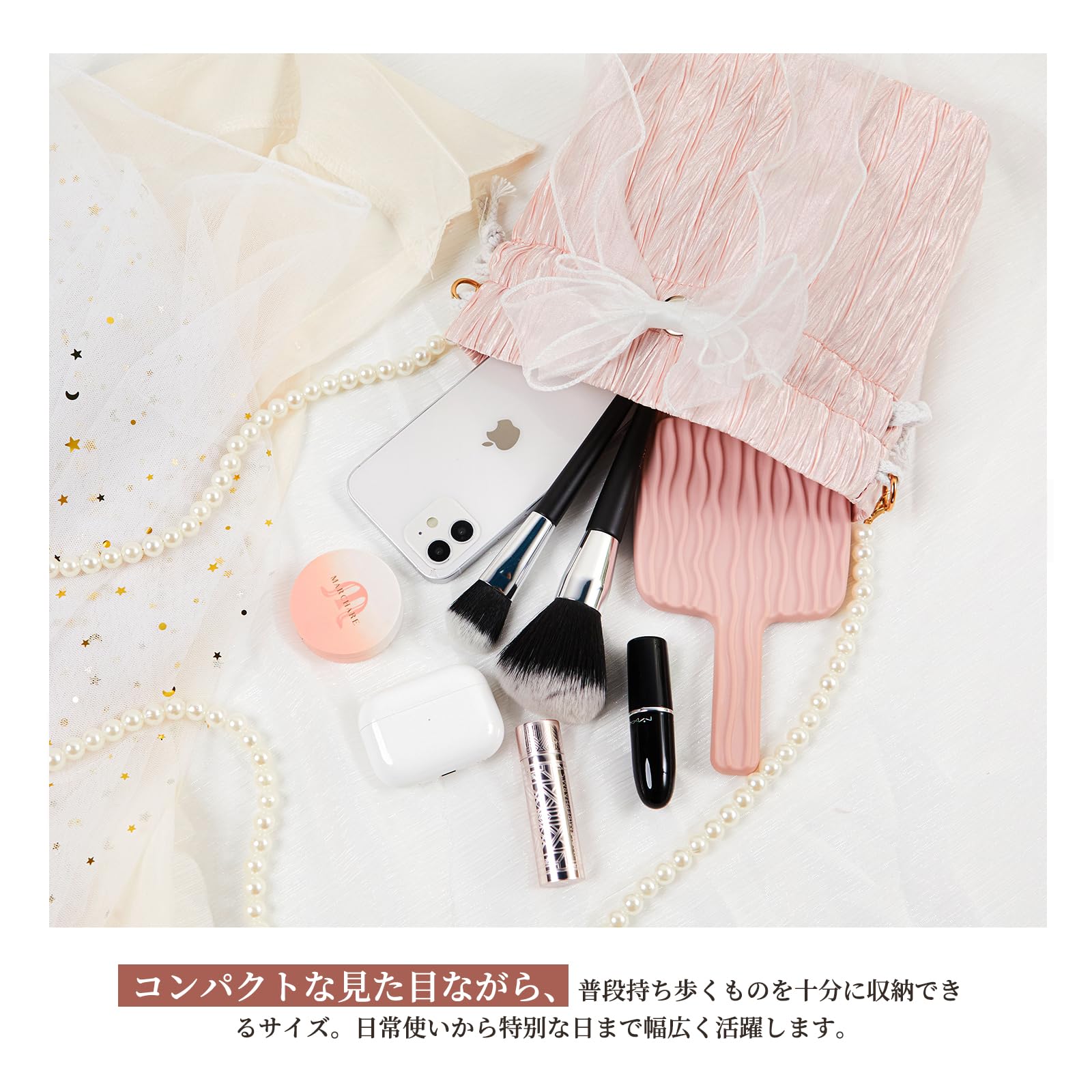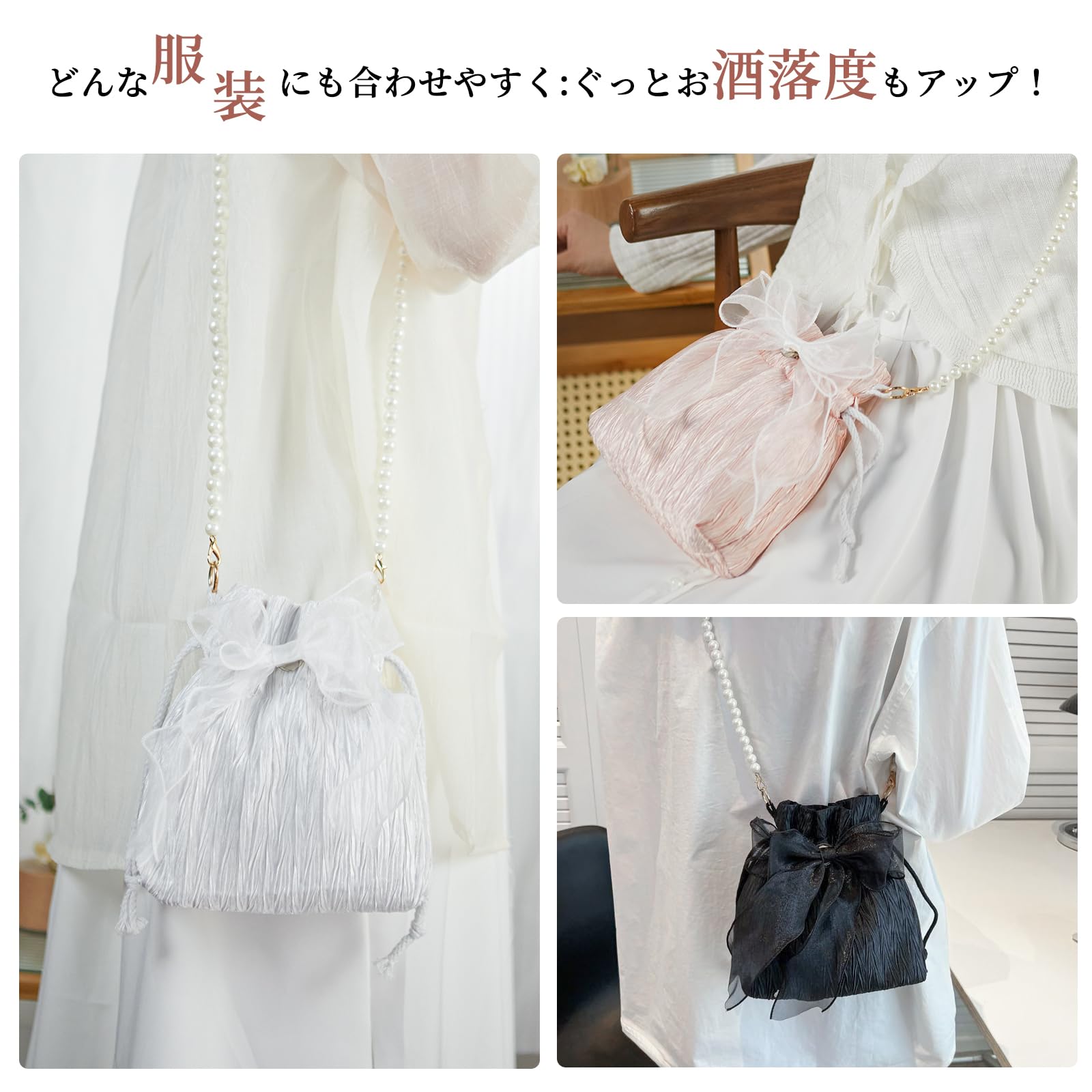 [TREXPURE] 巾着バッグ ショルダーバッグ レディース 浴衣バッグ 斜め掛け 小さめ 巾着 パール リボン 軽量 ミニ コンパクト 大人 子供 可愛い 高見え カジュアル かわいい おしゃれ 成人式 結婚式 浴衣 和装 花火大会 お祭り