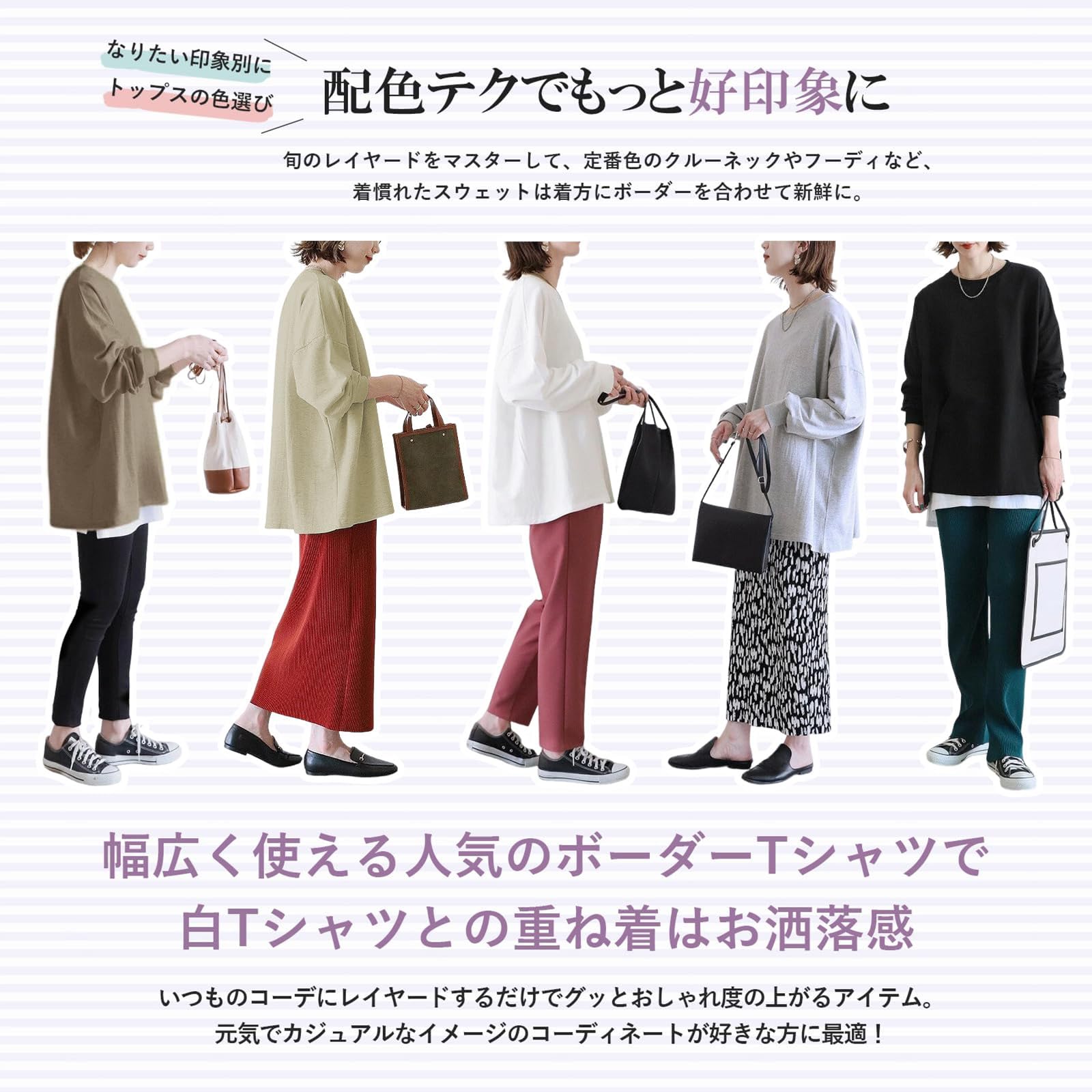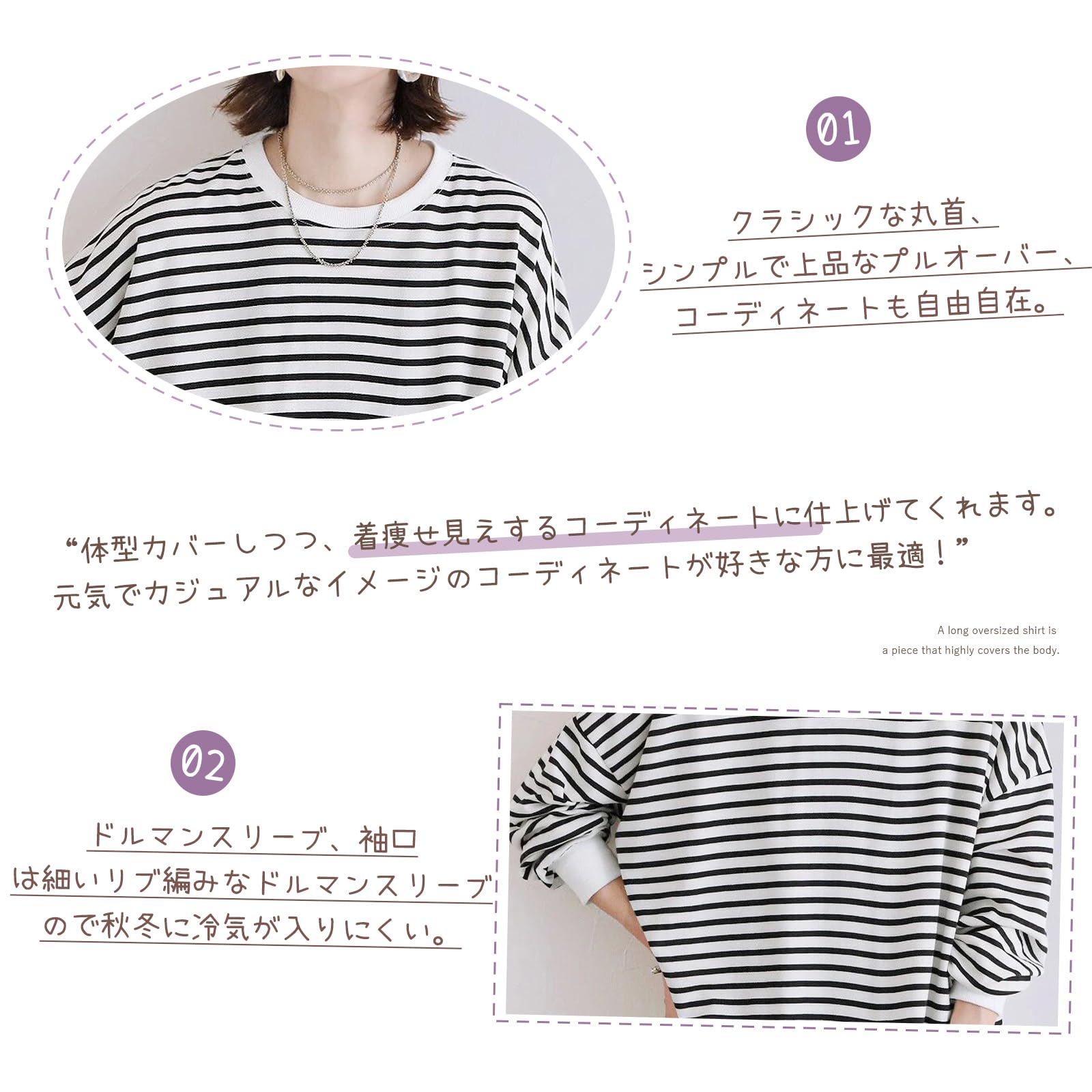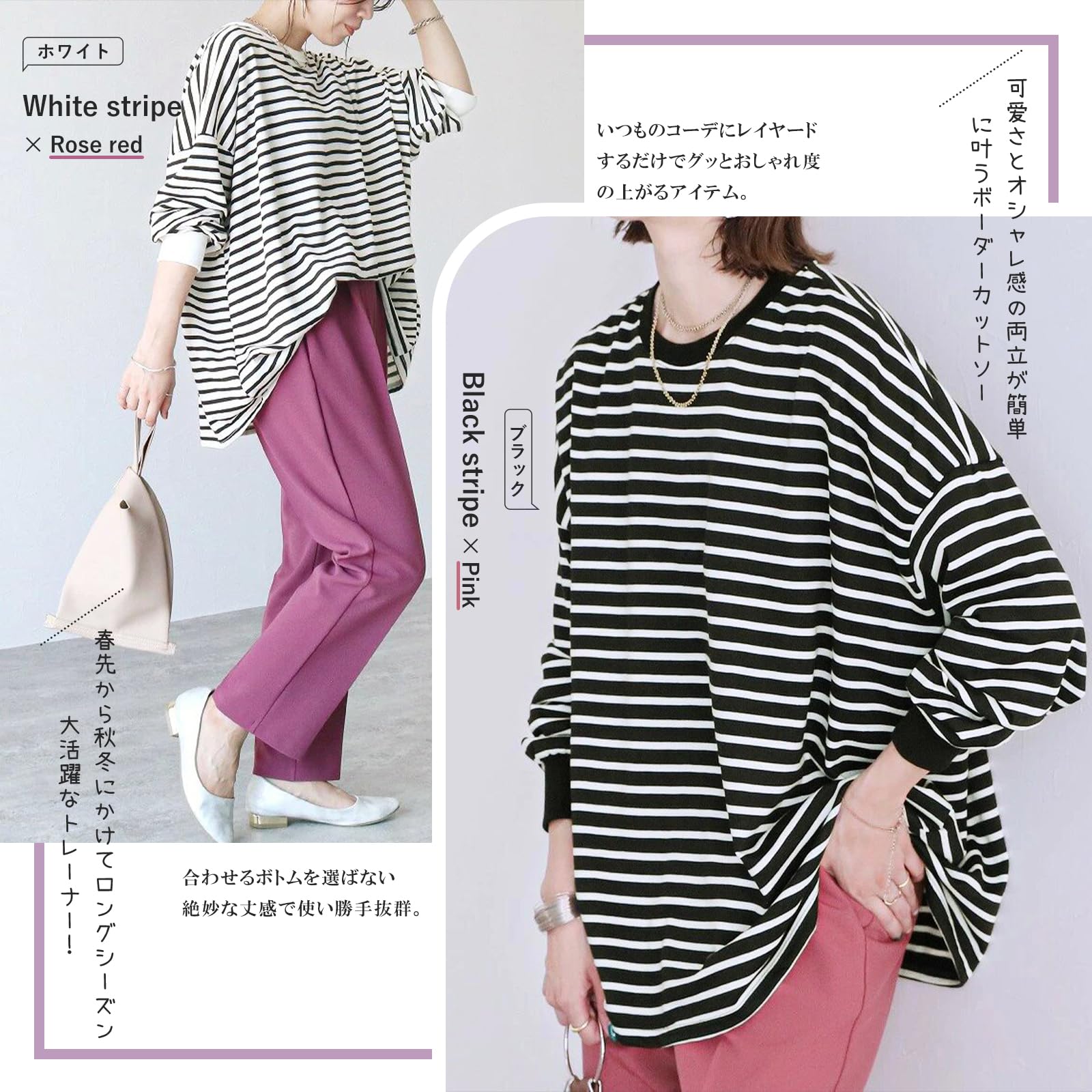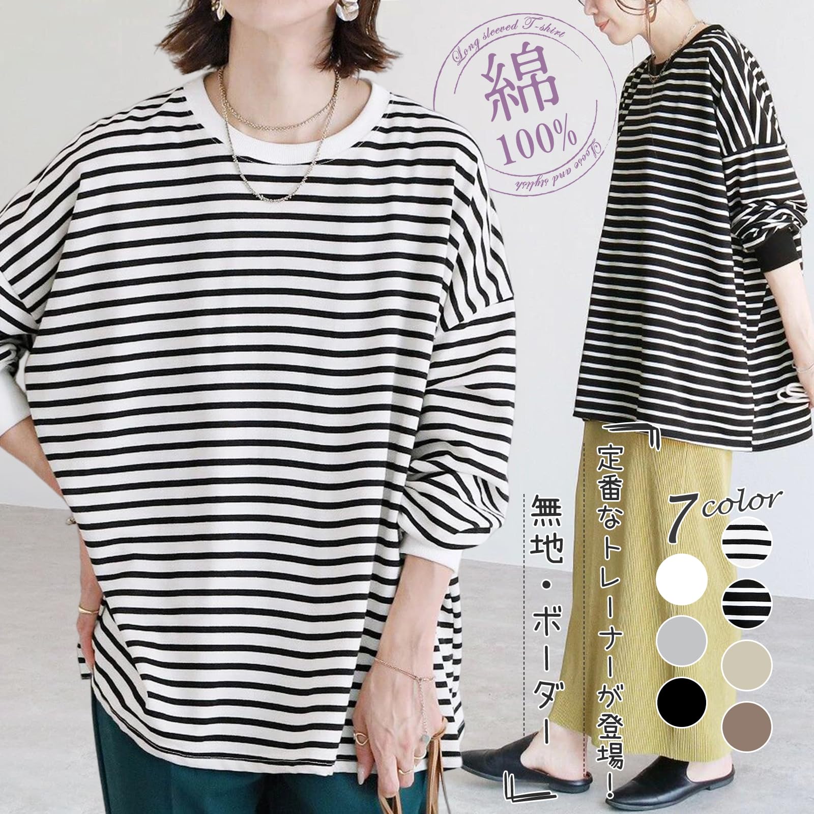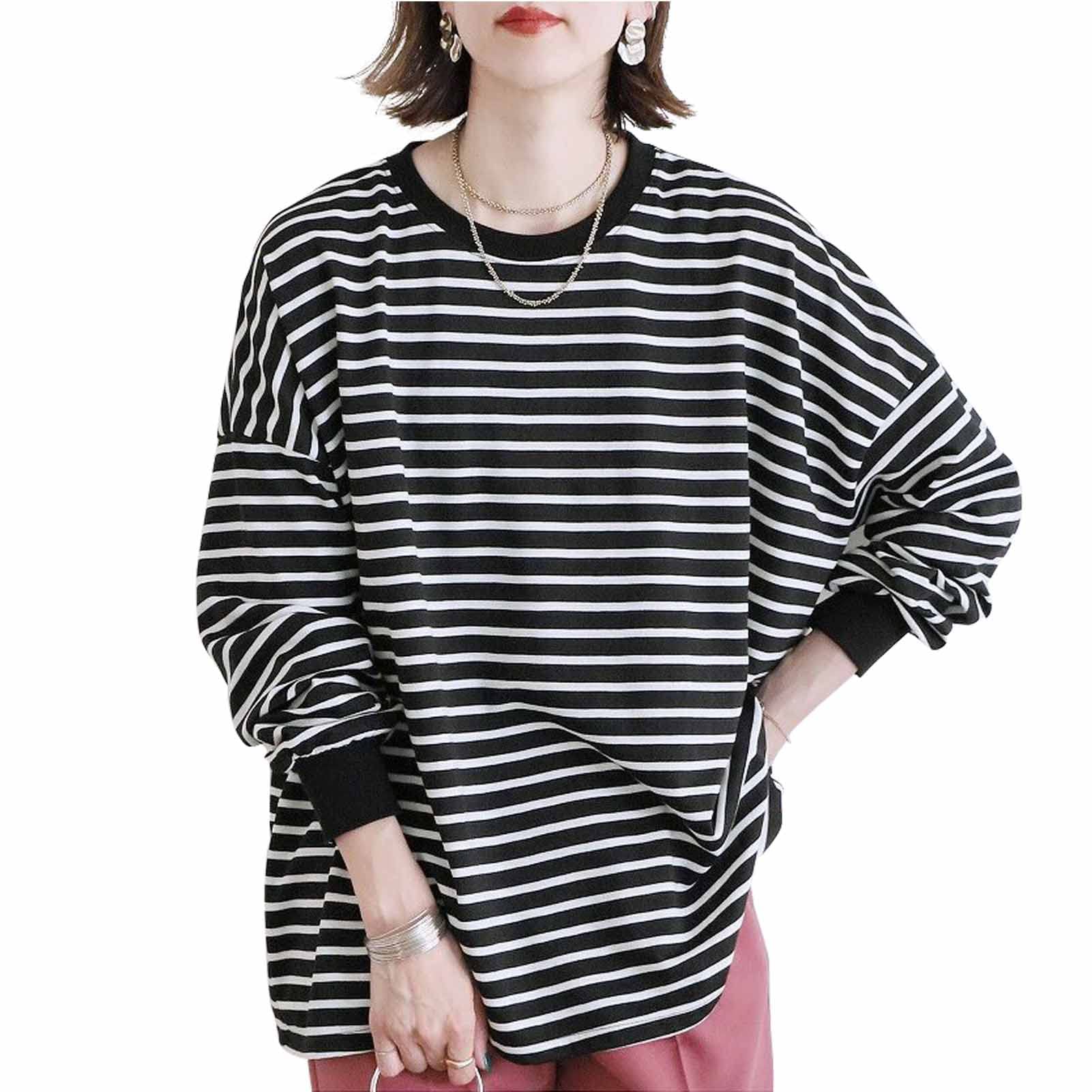 ビッグシルエットでトレンド感満載なオーバーサイズ長袖tシャツが登場!定番なゆったりとしたボーダーtシャツや無地シャツはおしゃれでかわいい。春先から秋冬にかけてロングシーズン大活躍なトレーナー!シンプルで上品なプルオーバー、コーディネートも自由自在。ブラックのボーダー、無地のブラック、ホワイトのボーダー、無地のホワイト、グレー、ベージュ、コーヒー7色をご用意しており、オン・オフ問わず活躍する着く回し力抜群、秋冬の洒落感を手に入れる。