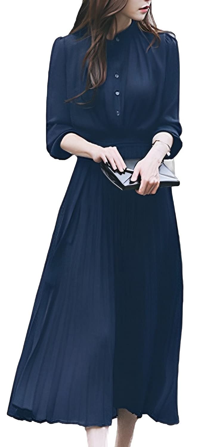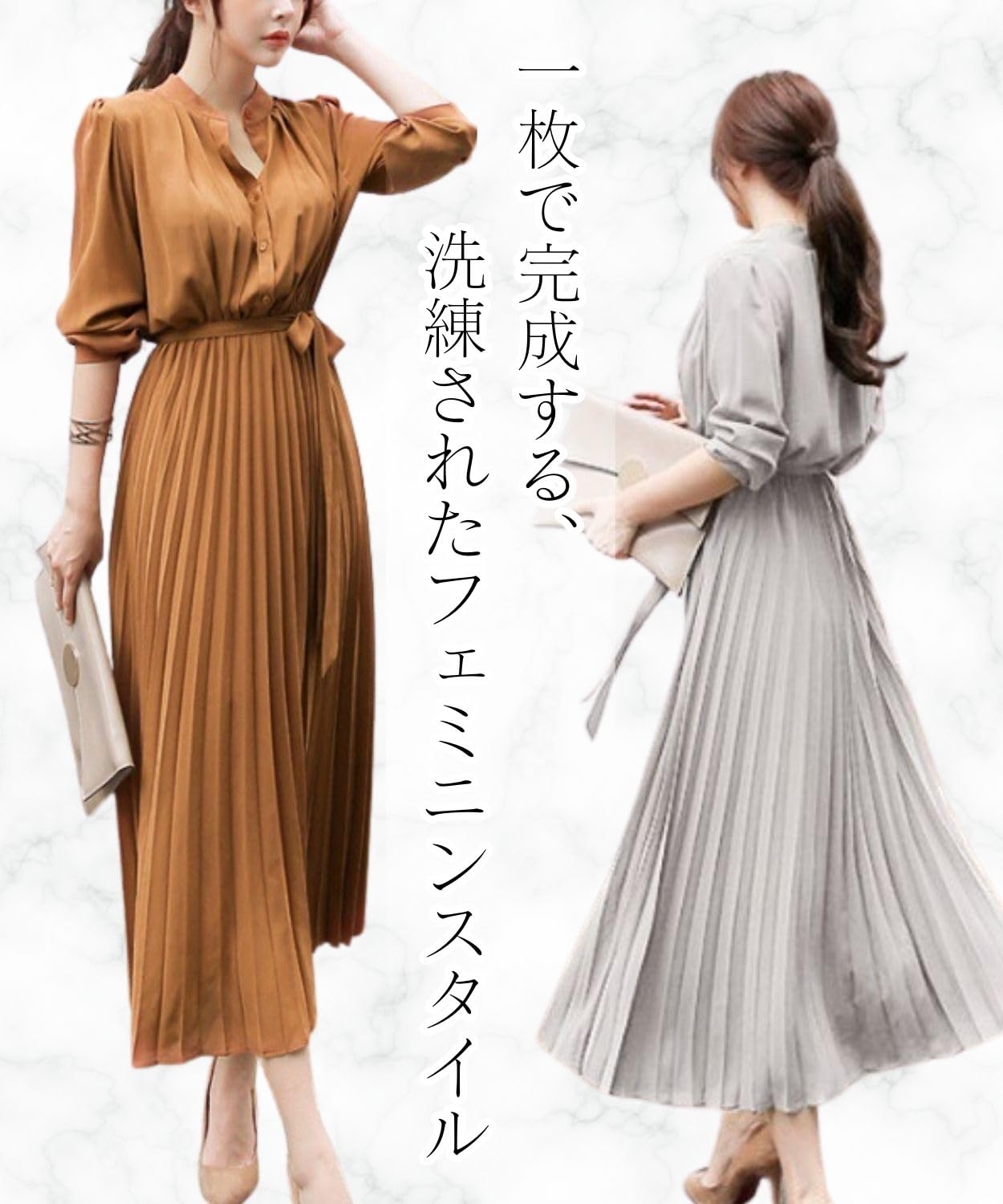 フォーマルな場でもカジュアルな場でも着用できる、万能なアイテム。ロング丈のマキシ丈が脚長効果を発揮し、着痩せも叶えます。清楚系のデザインに、フリルやベルト、シフォン素材のプリーツが加わり、女性らしい可愛いらしさと華やかさが漂います。