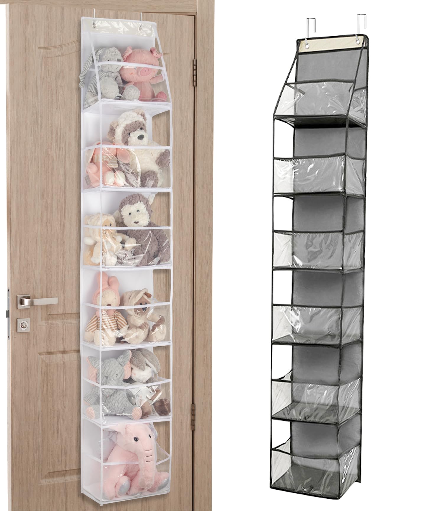Hanakaze ぬいぐるみ 収納 大容量 ドア掛け 収納 6段 ぬいぐるみ 収納 壁掛け ウォールポケット おもちゃ ケース 収納 ドア掛 知育 子供 部屋 室内 用 空間活用 整理整頓 見せる ドア 収納(グレー)