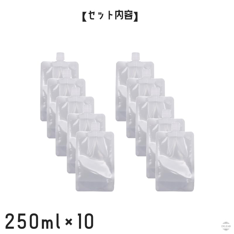 スパウトパウチ 透明 250ml 10個 セット 【100ml 150ml 200ml 250ml 300ml 380ml 500ml 選択可】 ドリンク パウチ パック スパウト 大口 保存 容器 飲料 容器 ジュースパック ふた付 ゼリー 空容器 ジュース 自立 スパウトパウチスタンド 袋 テイクアウト