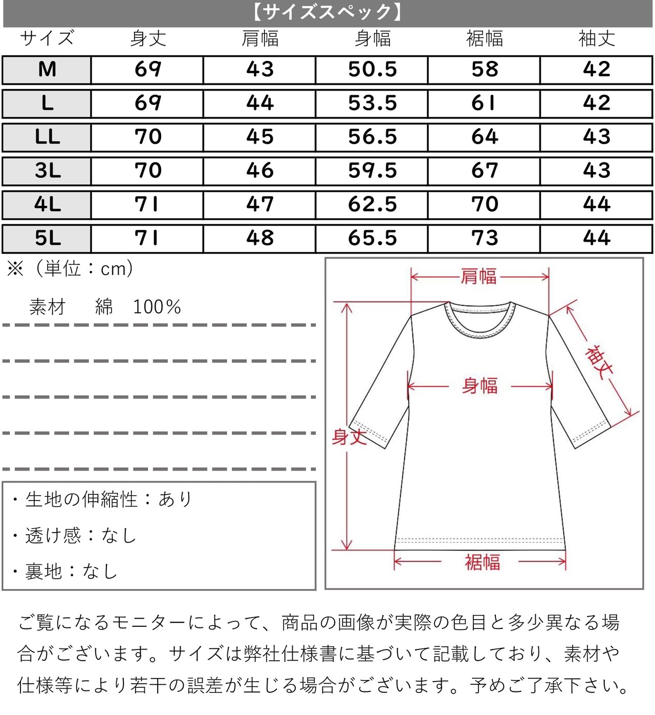 5Lサイズ:バスト131cm:身丈71cm:肩幅48cm袖丈44cm