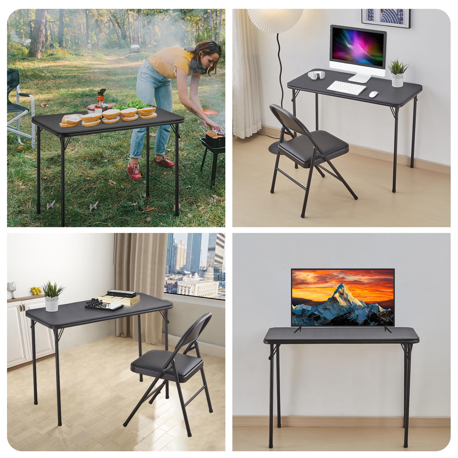 KAIHAOWIN 折りたたみテーブル 幅97×奥行47×高さ70cm 折りたたみデスク 組立不要 オフィステーブル パソコンデスク PC コンパクト 作業台 省スペース 在宅勤務 学習机 勉強机 ブラック