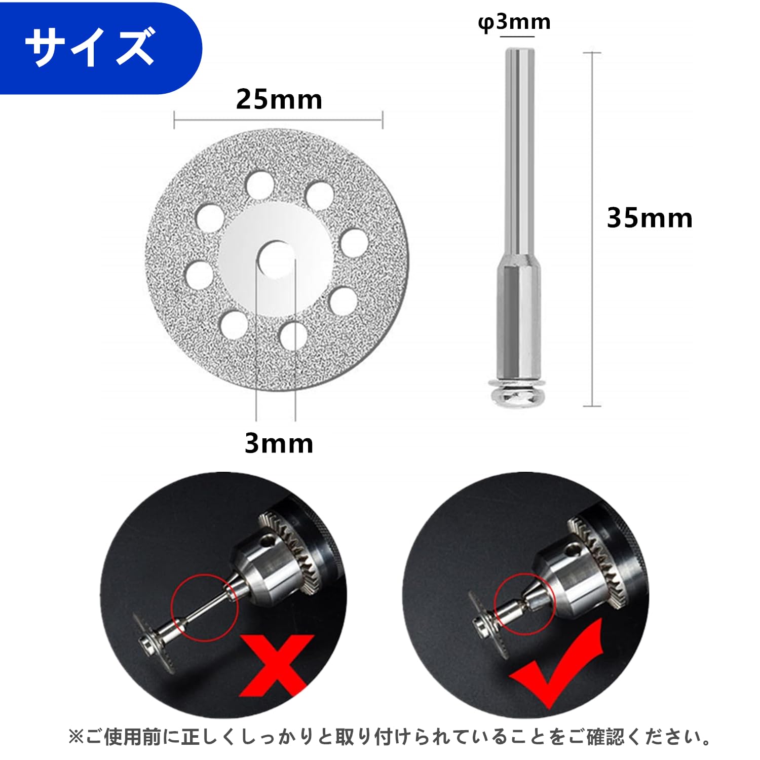 【特価在庫】10枚入り ミニダイヤモンドカッター 丸穴ダイヤモンドカッティングディスク 直径25mm 3mm軸2本付 ダイヤモンドビットブレードセット ミニルーター ビット ミニルーター/ルーターリューター用 | GIGATERA