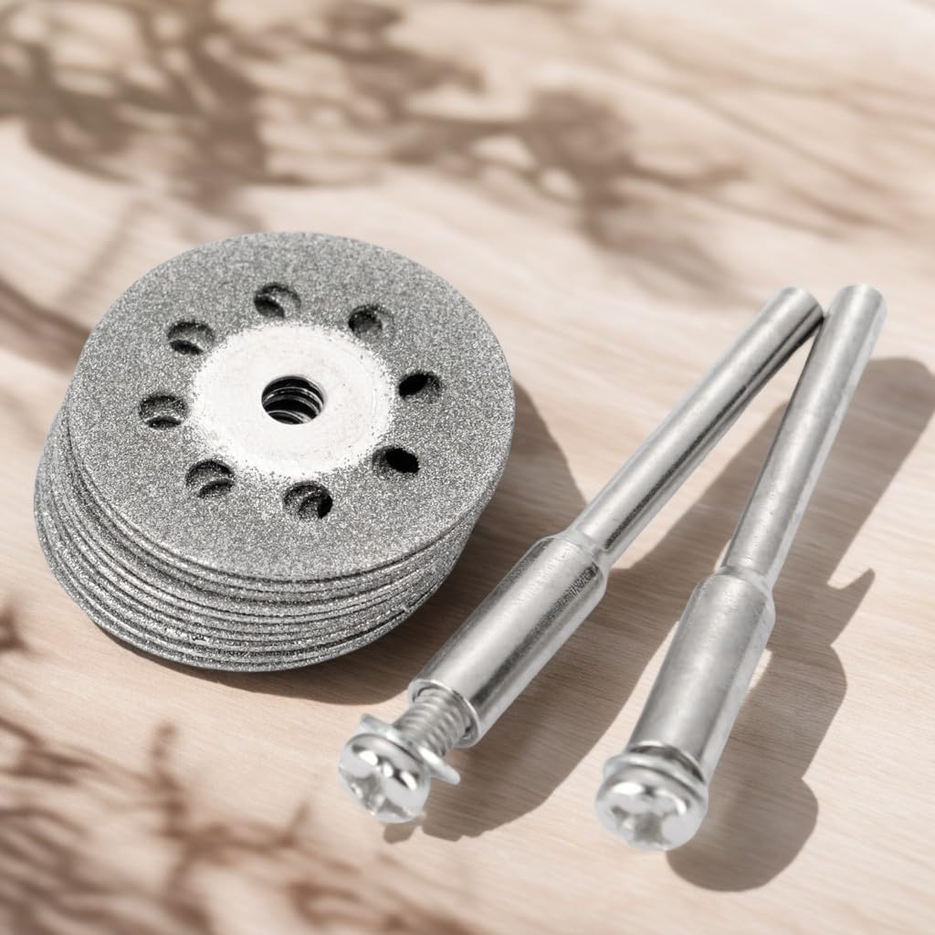 10枚入り ミニダイヤモンドカッター 丸穴ダイヤモンドカッティングディスク 直径25mm 3mm軸2本付 ダイヤモンドビットブレードセット ミニルーター ビット ミニルーター/ルーターリューター用
