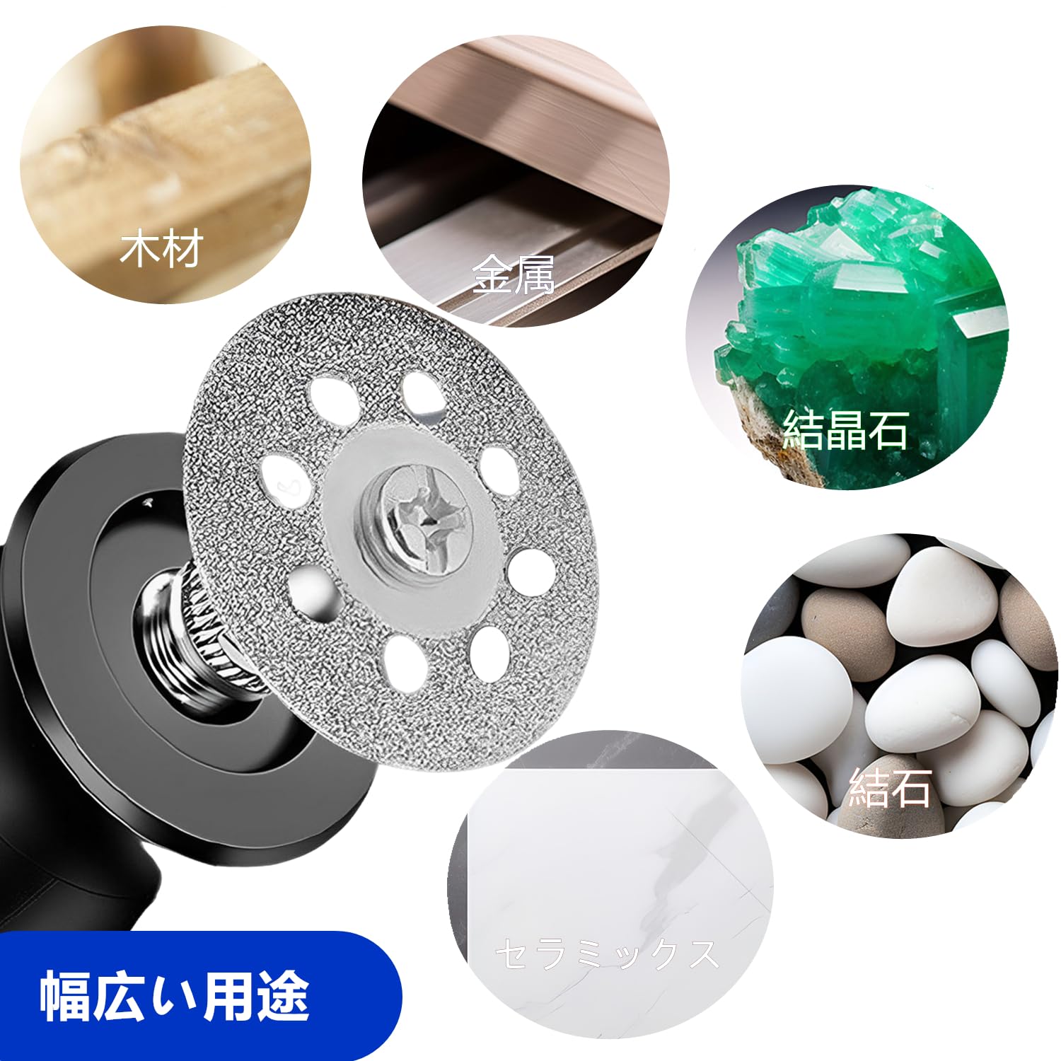 【幅広い用途】鋳鉄部品の研削、金属形材の研削、金属表面の研削、およびDIY工芸や宝石製作の際にセラミックタイル、ガラス、貝殻、結晶石、石片、陶磁制、薄鉄片アルミなどの切断用。