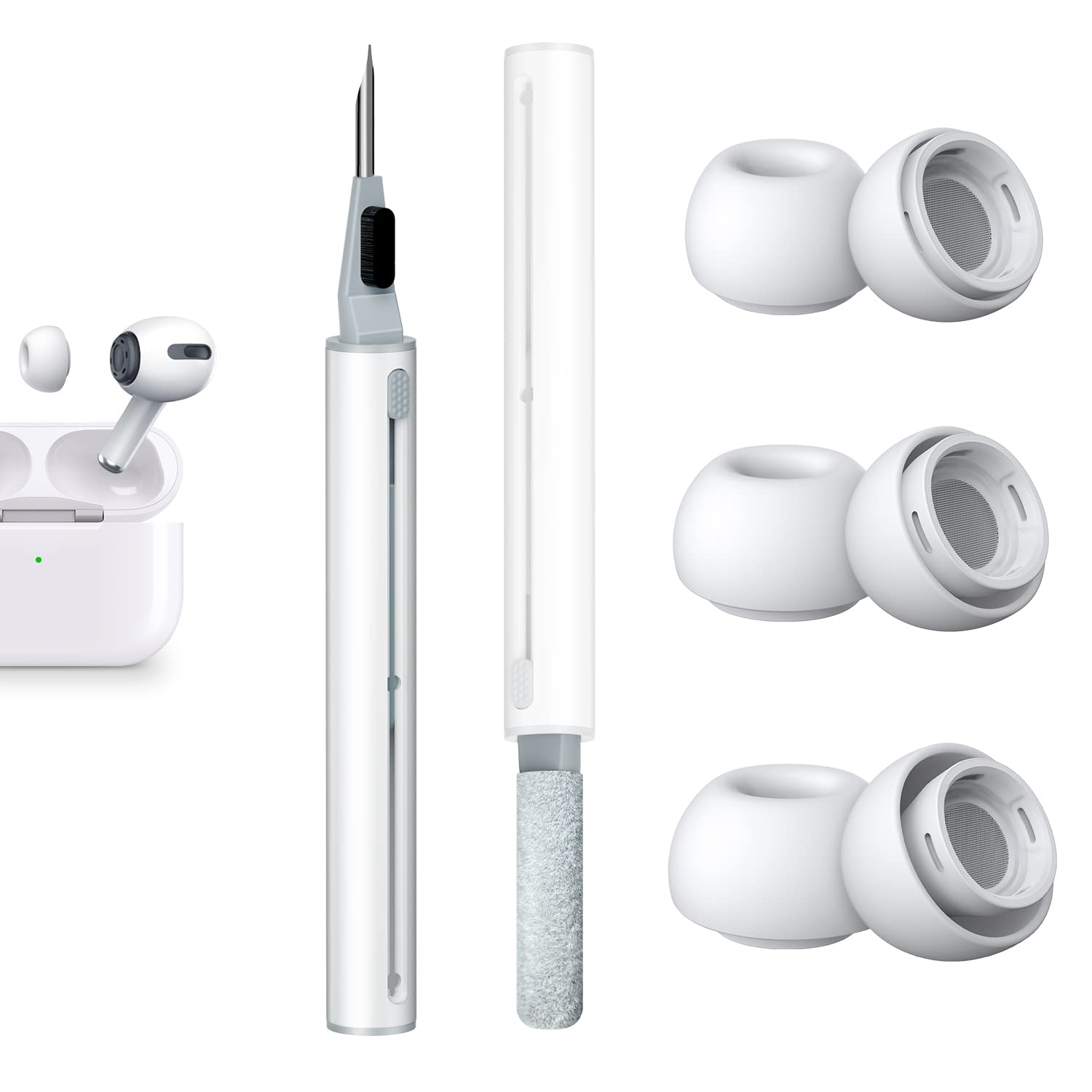 YUWAKAYI イヤーピース AirPods Pro 第1/2世代対応、3 in 1イヤホン掃除道具付き、シリコンイヤーチップ (S/M/Lサイズ 各ペア)柔らかい 滑り止め、イヤーピース収納ケース付き