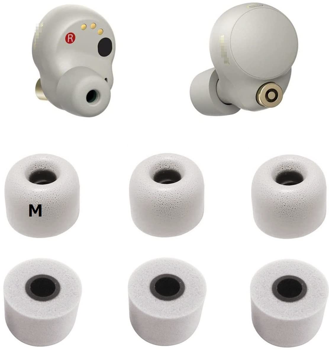 低反発イヤーピース SONY用 WF-1000XM4用 ウレタン製ノイズキャンセリングイヤーピース WF-1000XM5用 WF-C700n用 記憶フォームイヤーチップ Fit in the Case 遮音性 フィット感 装着感向上 【プラチナシルバー・Mサイズ3ペア】 SM