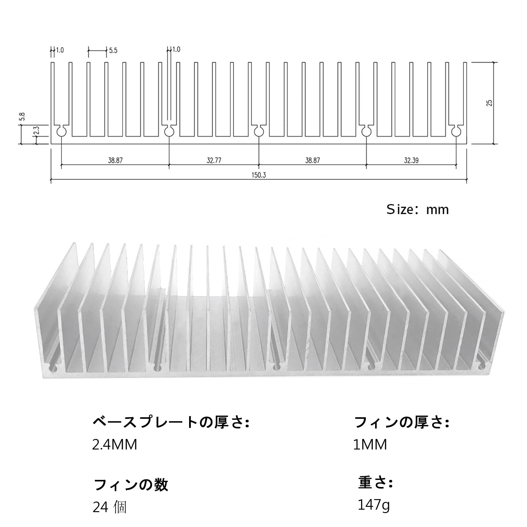 材料:アルミニウム、よい熱伝導性。