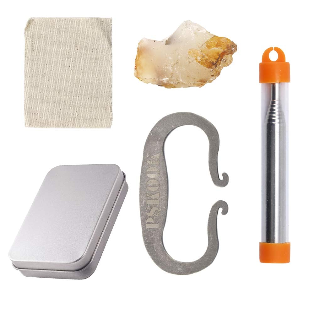 PSKOOK 火打鎌 (火打ち鎌) 火打金 (火打ち金) 火打石 (火打ち石) 火吹き棒 火打ち石セット たいまつ 松明 火起こし ファイヤースターターキット 火口 縁結び