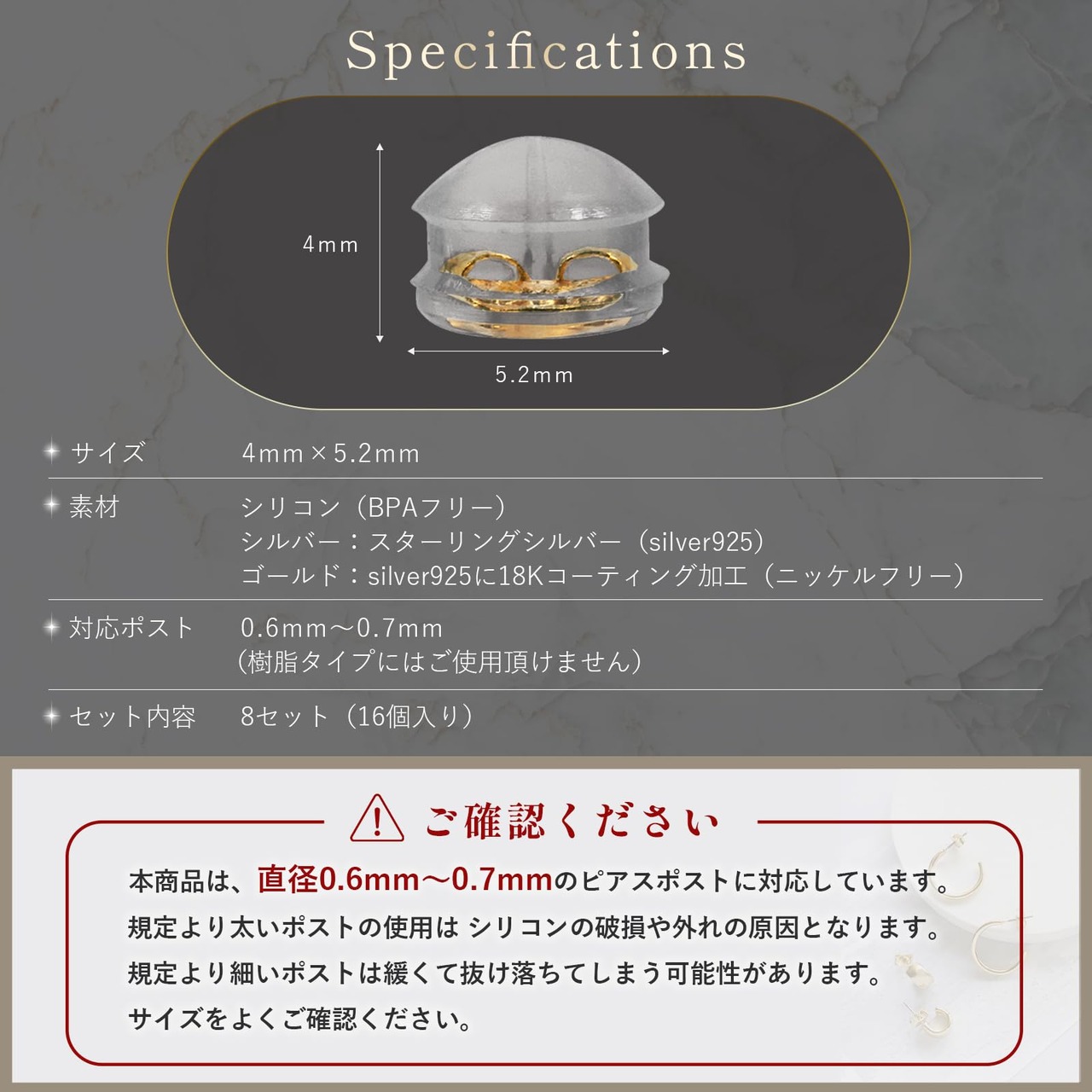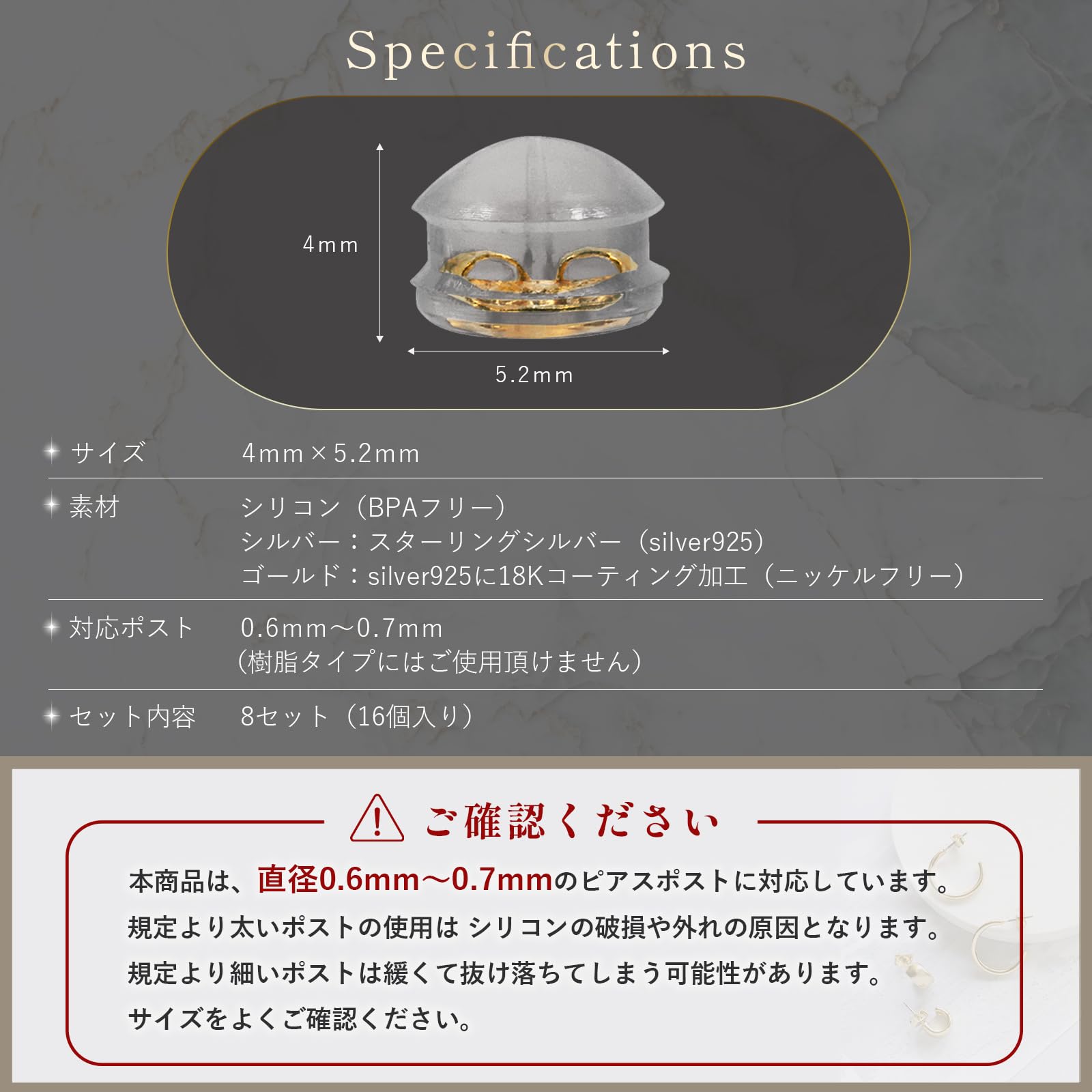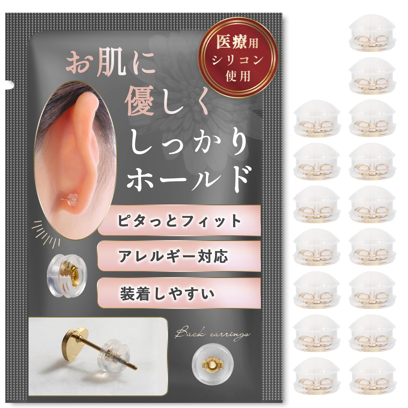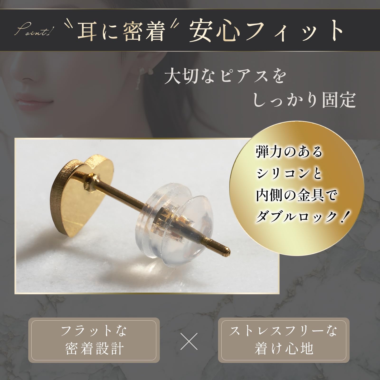 【ニッケルフリー&スターリングシルバー】金属アレルギーの方も安心なピアスキャッチ。敏感肌の方も快適に。 ニッケルフリー&スターリングシルバー採用。