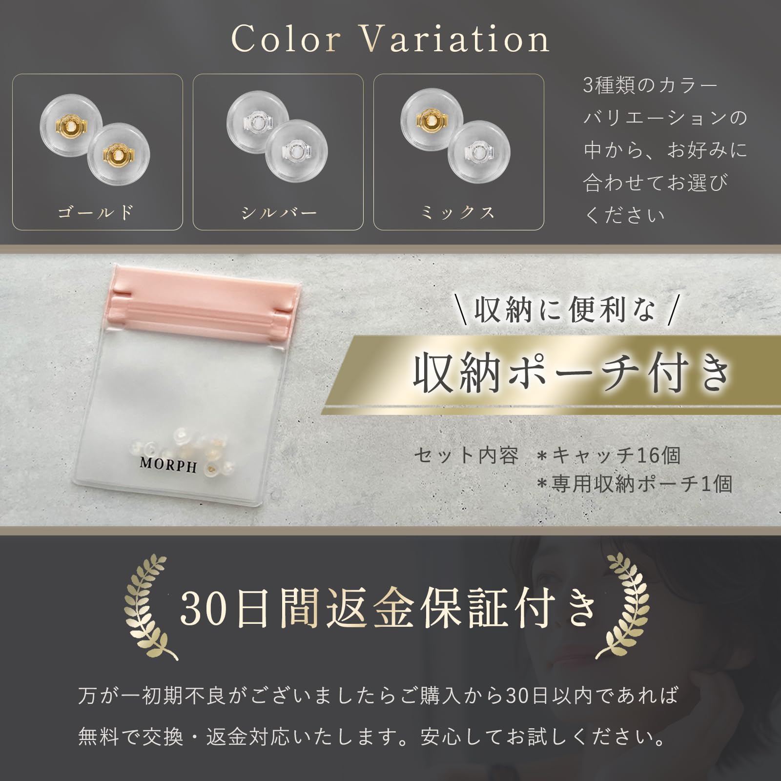 【人気】(モーフ) MORPH ピアス キャッチ シリコン 落ちない 8ペア(16個)セット アレルギー対応 (ゴールド)
