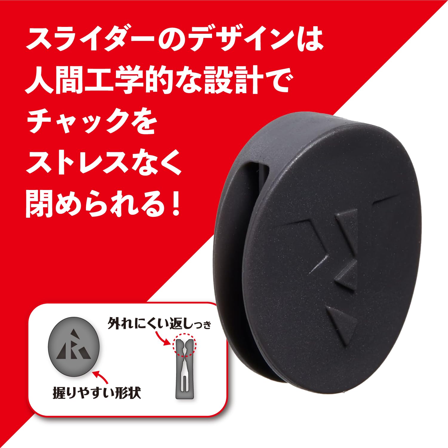・とにかく外れにくい 力いらずでチャックが閉められるスライダー