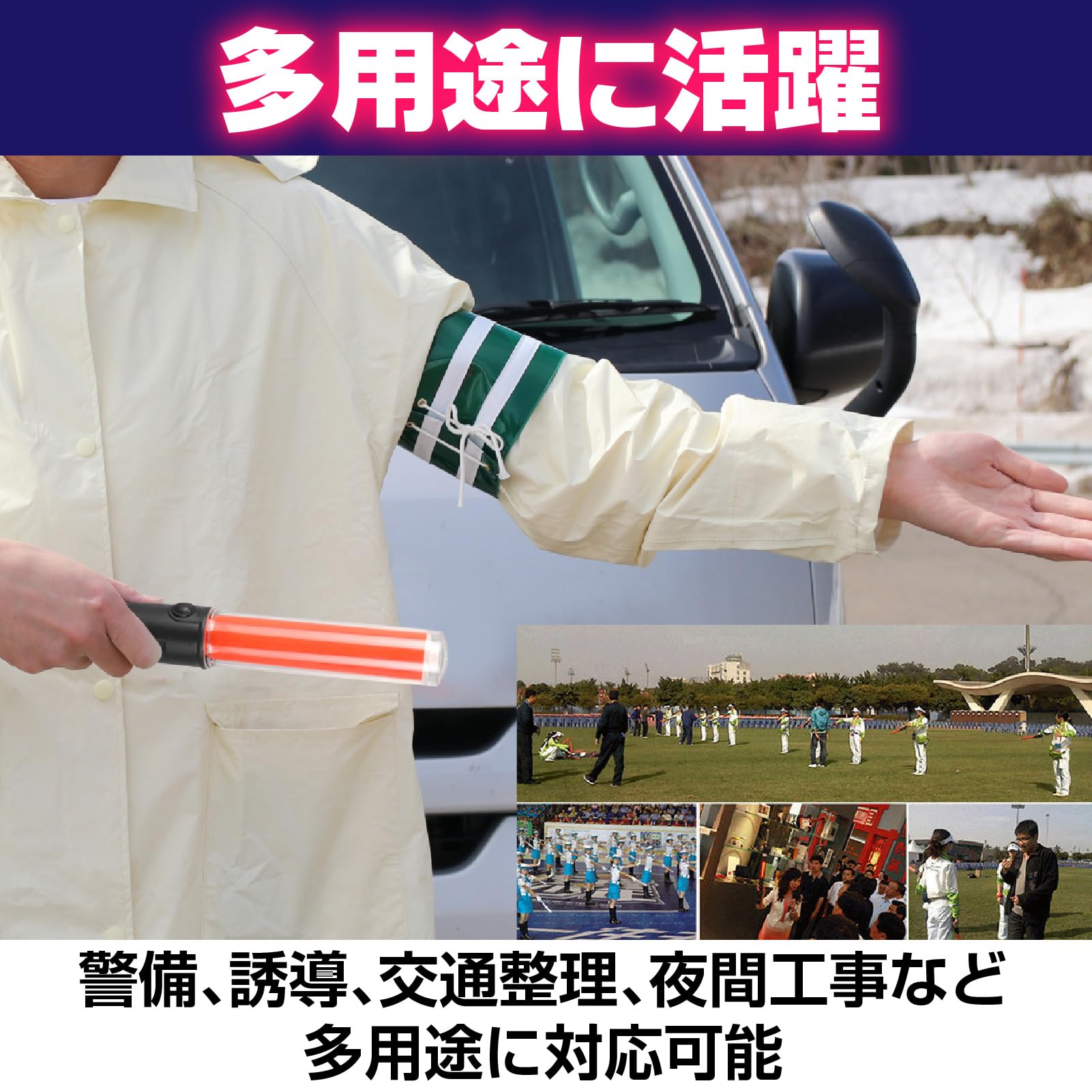 【視認性抜群の誘導棒】 明るいLEDライトが200M先からでもはっきり見えるため、夜間の警備や交通整理に最適です。視認性が高く、安全性を確保します。