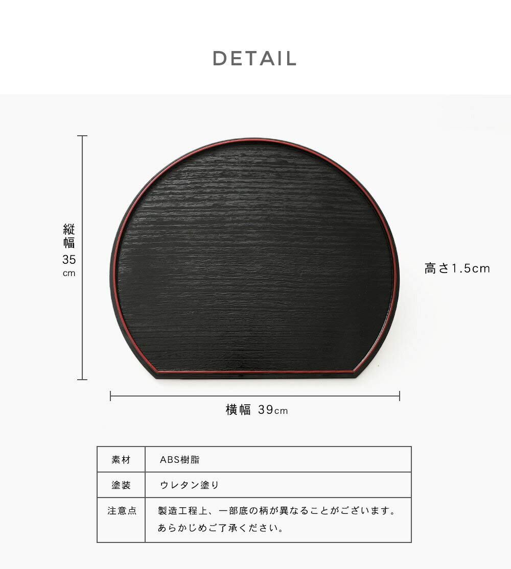 半月盆 両面塗 滑り止めあり すべりどめ ノンスリップ 黒 朱 (1 尺三 39cm)