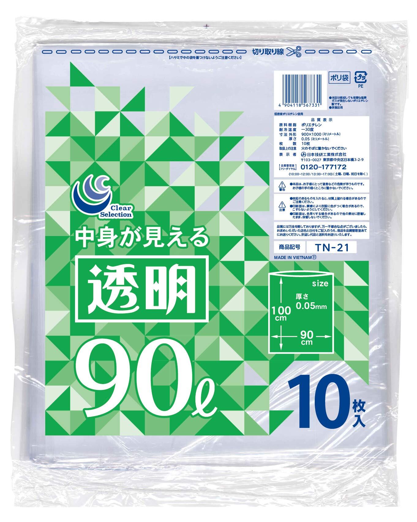 日本技研工業 TN-21 透明ポリ袋 90L 10枚
