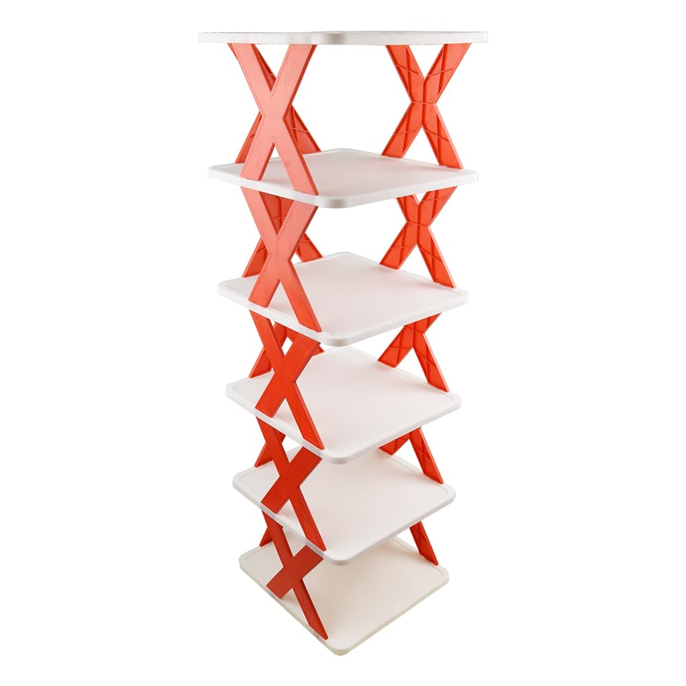 折り畳み式シューズラック 6層 省スペース コンパクト 下駄箱 スニーカー ヒール サンダル (オレンジ)
