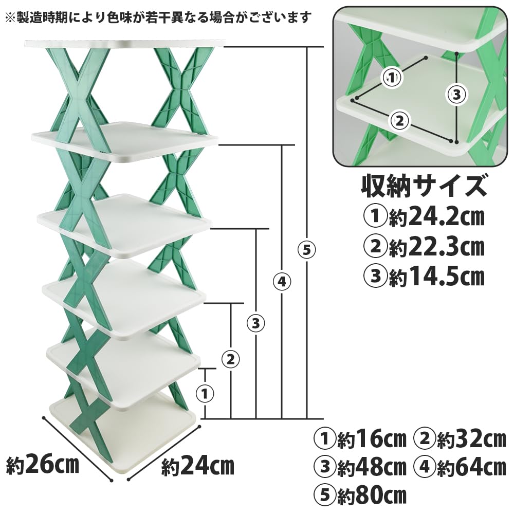 【セット内容】6層シューズラック×1点 【サイズ(約)】24cm×26cm×16~80cm 【カラー】ブルー・グリーン・オレンジ ※お好みのカラーをお選びいただけます。