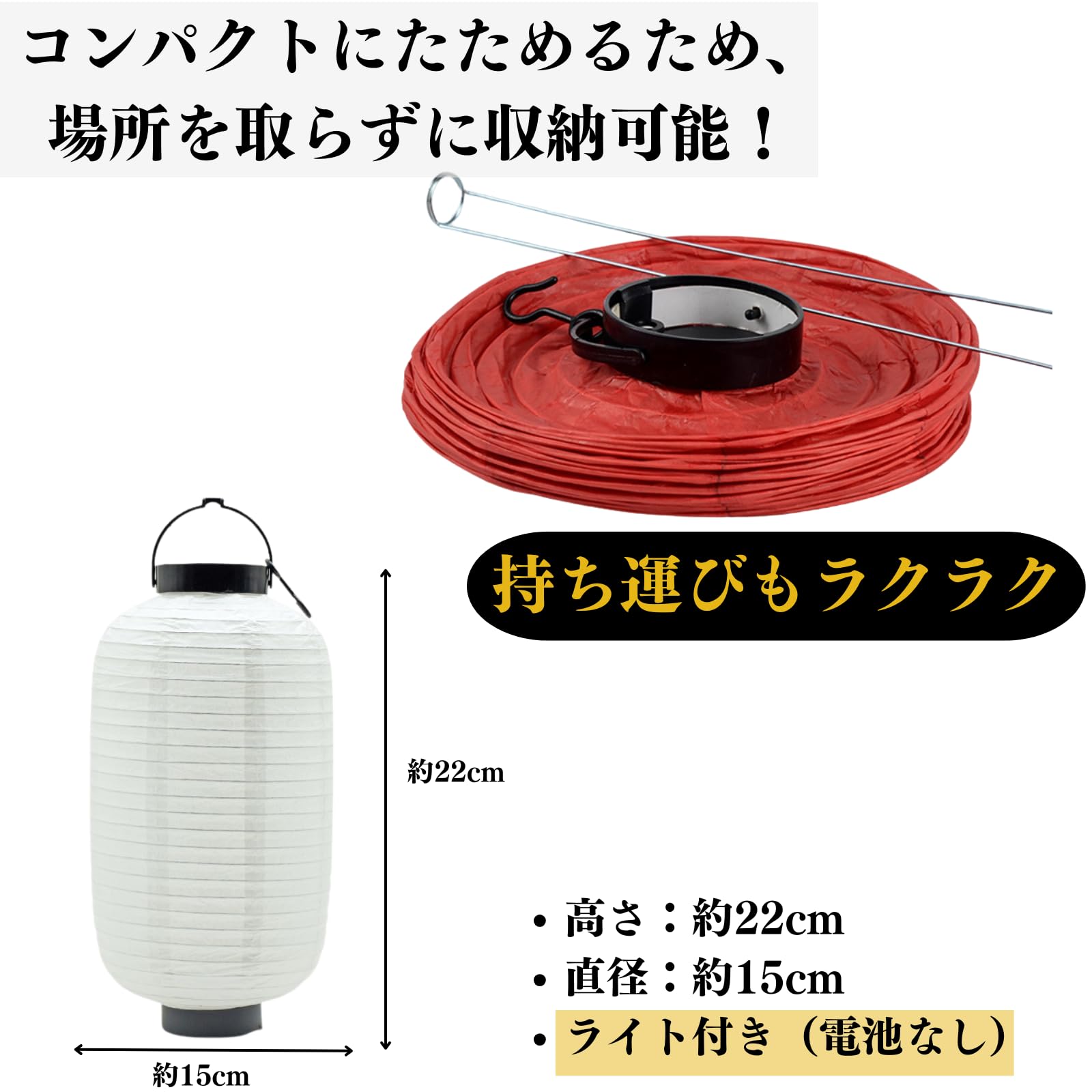 Quikaboo 提灯 ちょうちん 赤 白 和風 ランタン 折りたたみ式 赤ちょうちん ミニ提灯 ledライト付き 屋台 電池別売り (白)