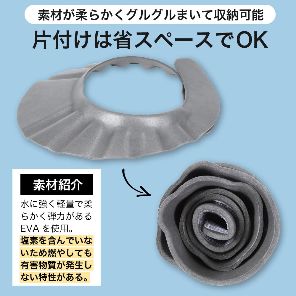 従来のボタン式ではサイズ調整が難しいというお客様の声を反映し、完成させたオリジナル商品です 「HAKATA PRODUCT」 商品企画、在庫管理・検品等を国内で実施している福岡発のブランド 【当ブランドだけのオリジナル仕様】 ボタン式ではサイズ調整が難しいというお客様の声を反映し、当ブランド独自で面ファスナーを採用したシャンプーハット 【全サイズぴったり】 赤ちゃんから大人までこれ1つで全サイズぴったりフィットするシャンプーハット 【柔らか素材・超軽量】 赤ちゃんの肌にも安心、介護の現場でも使用可能 【強力な面ファスナー】 シャワーの水圧に負けない、ズレを防止し、水の侵入を防ぐ仕様 【お風呂場に馴染むグレーを新色採用】 カラーバリエーションは4色展開、トレンドのおしゃれなダークグレーを採用