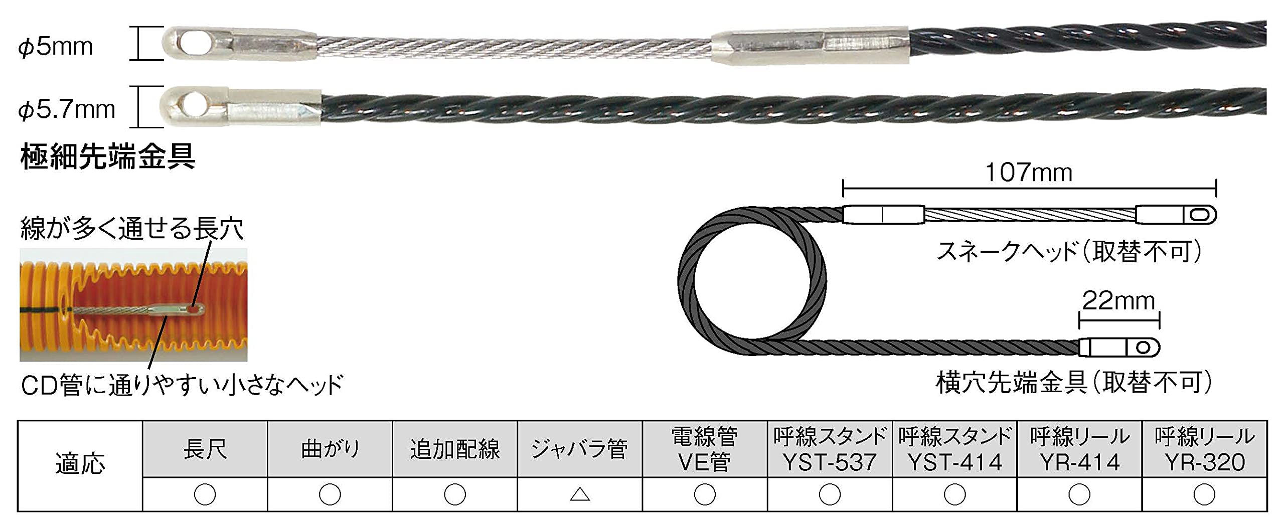 先端極細φ5mmの30mスチール(呼線)、曲りの多い細いパイプもよく通る!