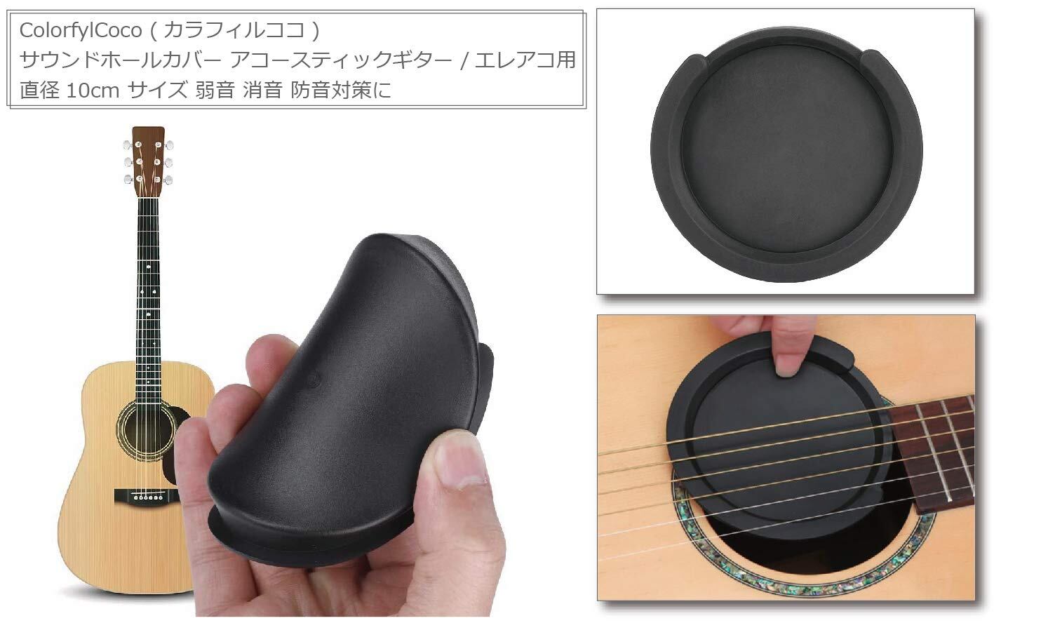 カラフィルココ サウンドホールカバー アコースティックギター エレアコ アコギ 用 ミュート 消音 弱音 夜間練習 などに (直径10cm)